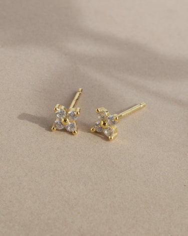 Orecchini a lobo a forma di fiore, realizzati con zirconi bianchi luminosi che donano brillantezza e freschezza. Un design delicato e femminile, ideale per ogni occasione.