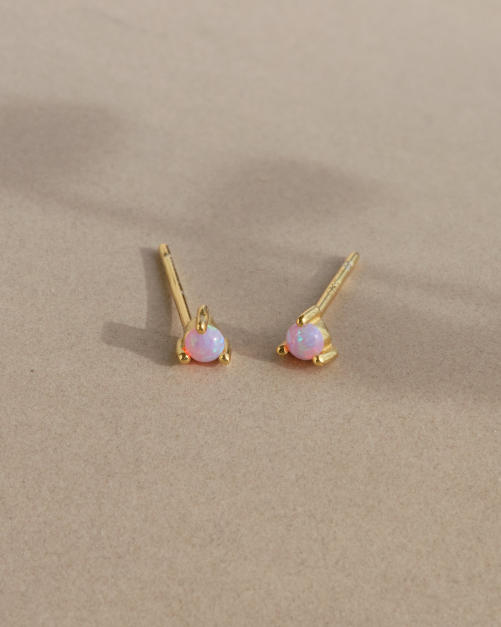 Orecchini a lobo con opale rosa tondo, montato su castone a tre griffe che ne esalta i riflessi iridescenti. Un design essenziale e raffinato, ideale da indossare ogni giorno o come tocco di colore delicato.