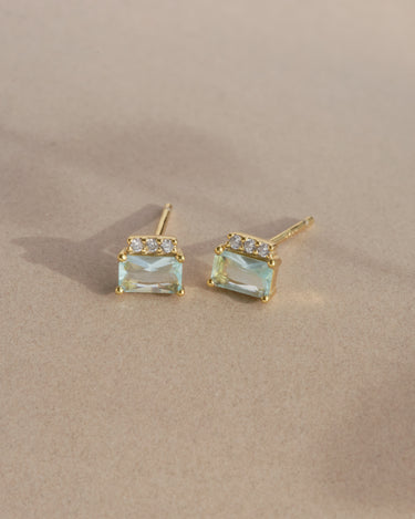 Orecchini a lobo eleganti con pietra verde acqua dal taglio rettangolare, arricchita da zirconi bianchi che donano brillantezza. Un design moderno e luminoso, perfetto per aggiungere un tocco di colore raffinato al tuo stile.