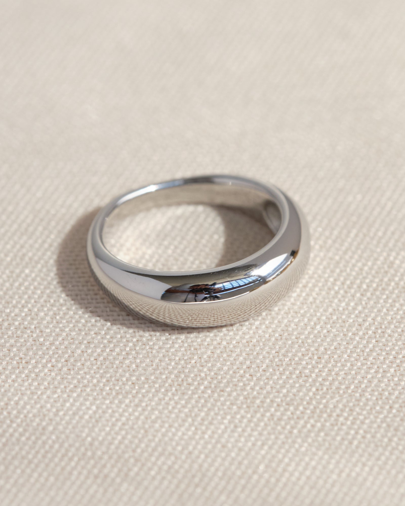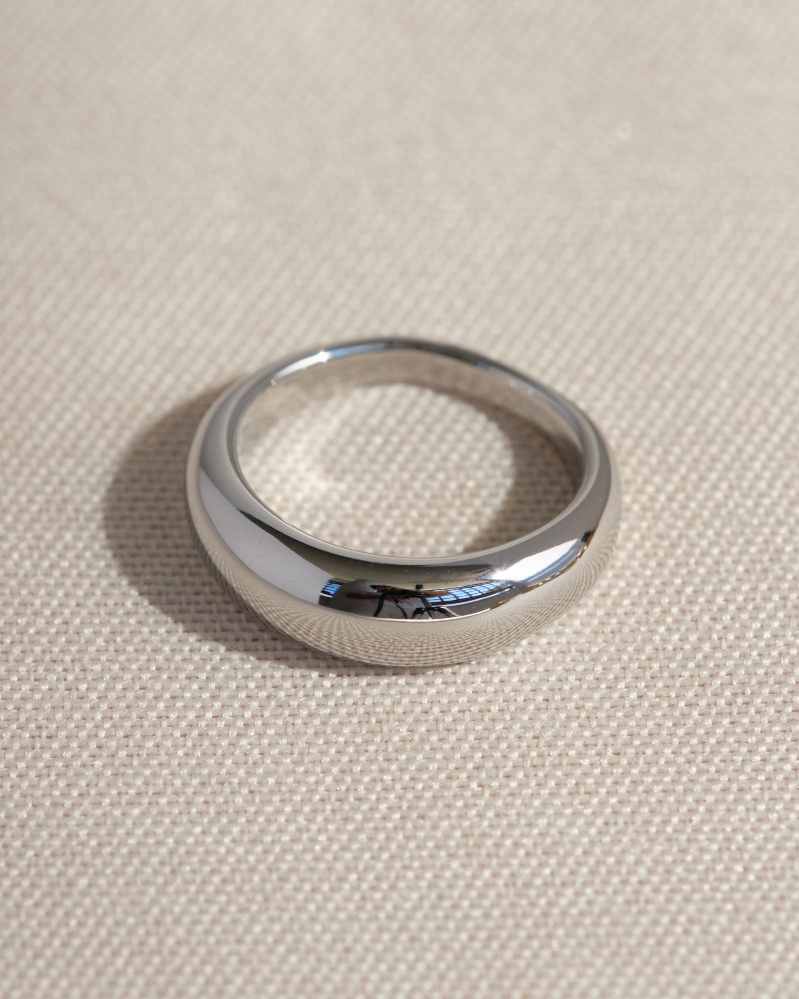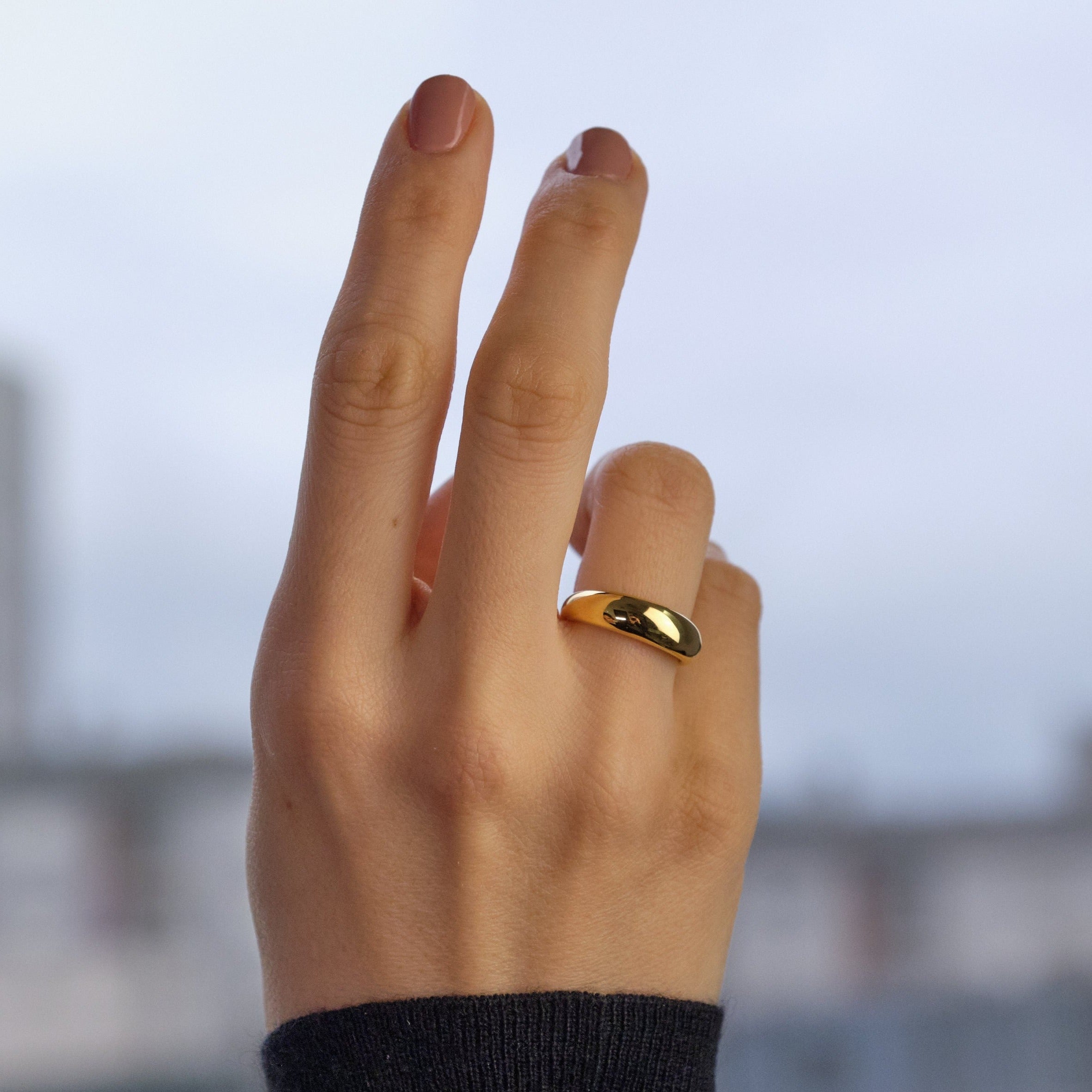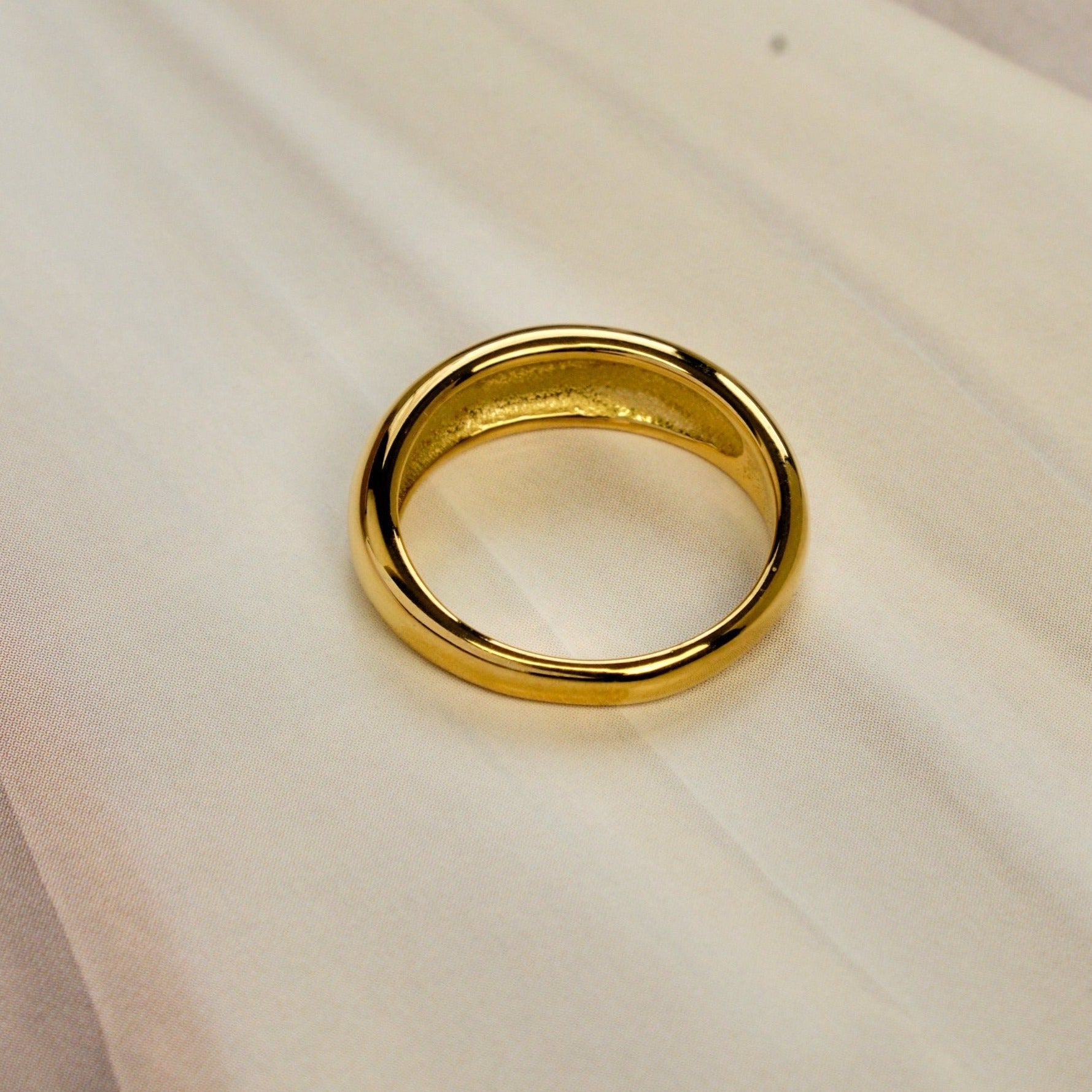 Un classico intramontabile in versione sottile. Questo anello bombato in acciaio inossidabile placcato oro unisce raffinatezza e versatilità, perfetto da indossare da solo o abbinato ad altri gioielli.