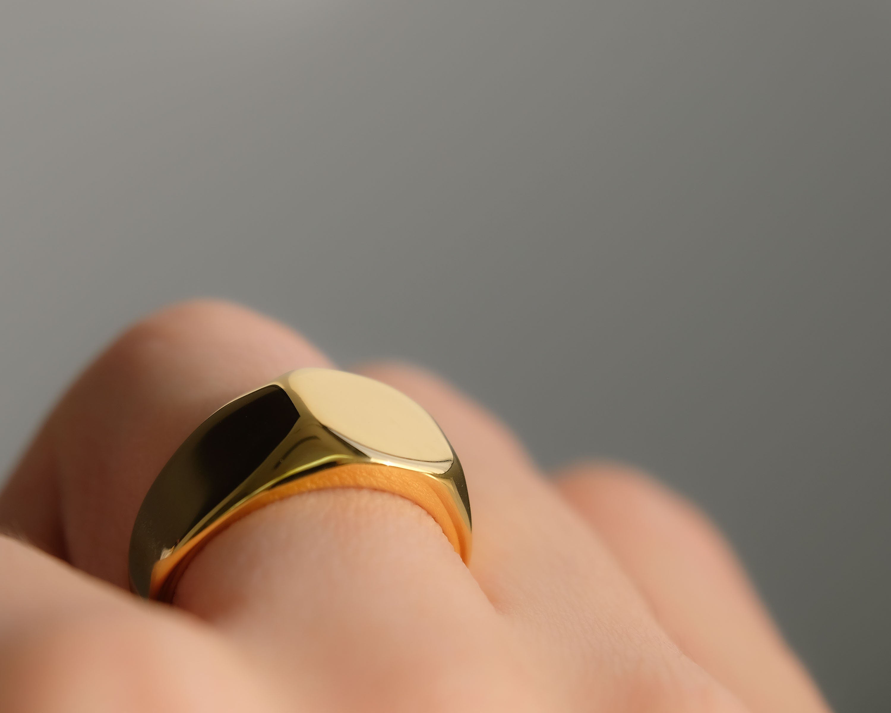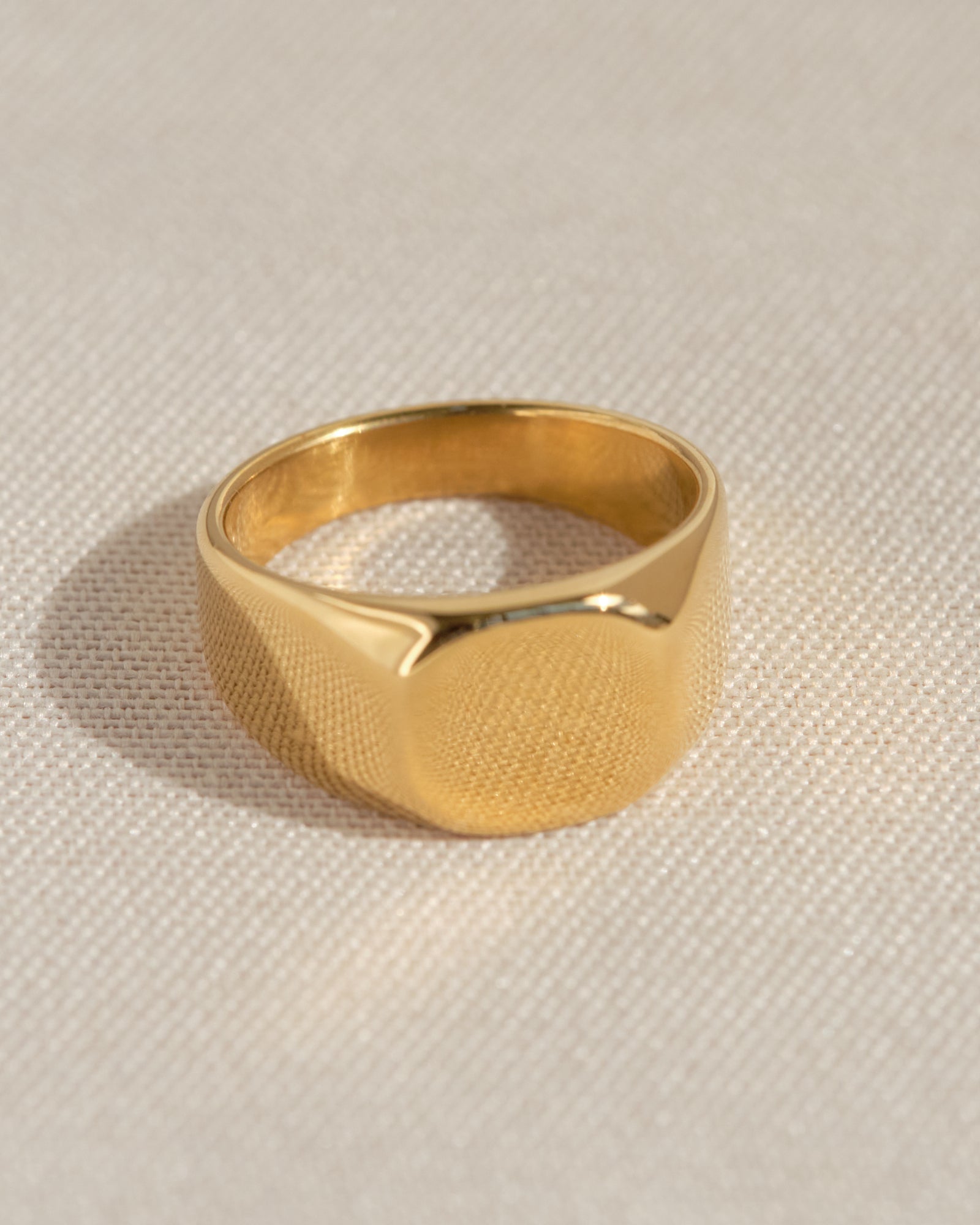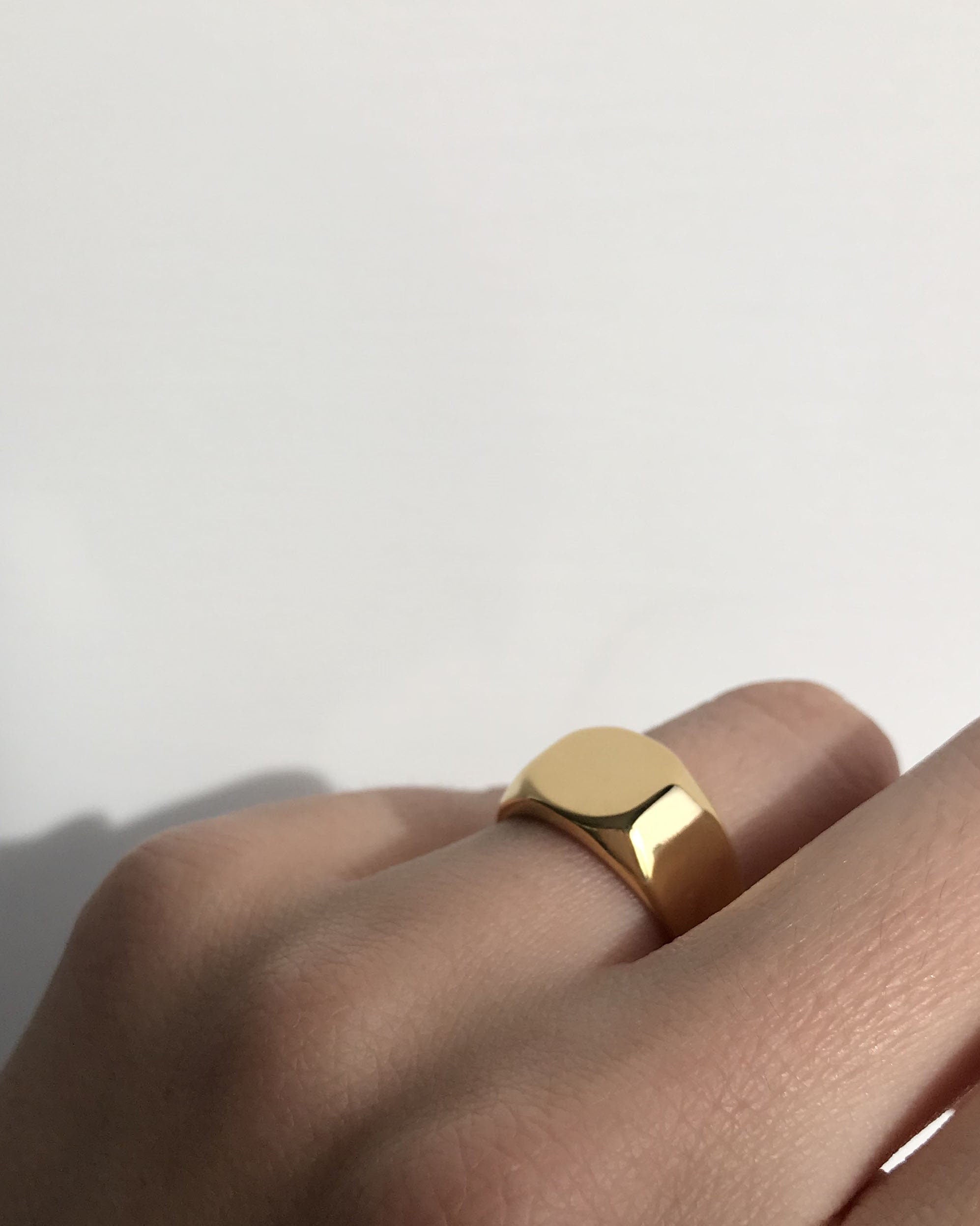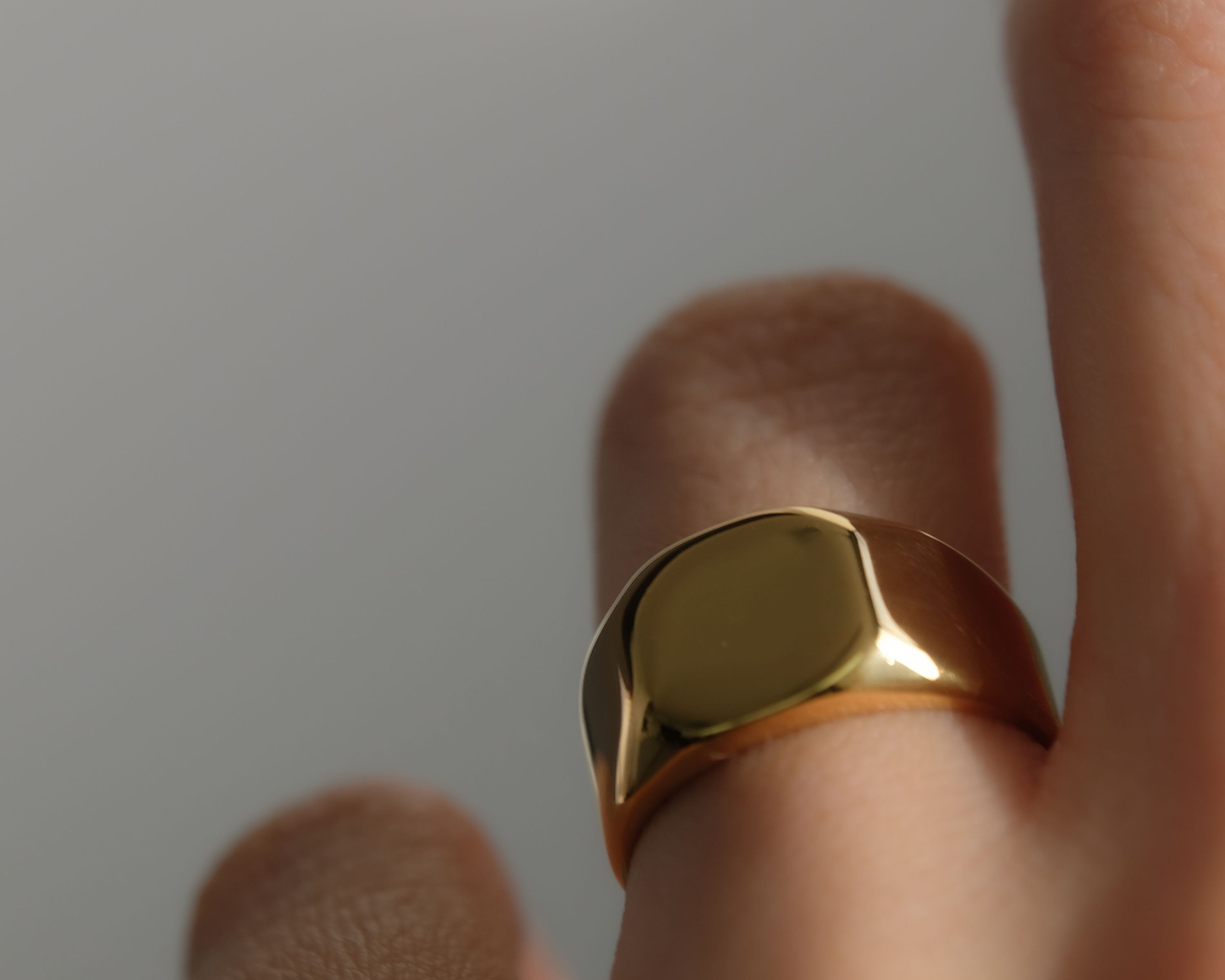 Linee geometriche e design essenziale rendono questo anello chevalier quadrato un accessorio di carattere, pensato per chi ama lo stile minimal con un tocco moderno. La superficie liscia e compatta lo rende versatile e facile da abbinare a qualsiasi look.