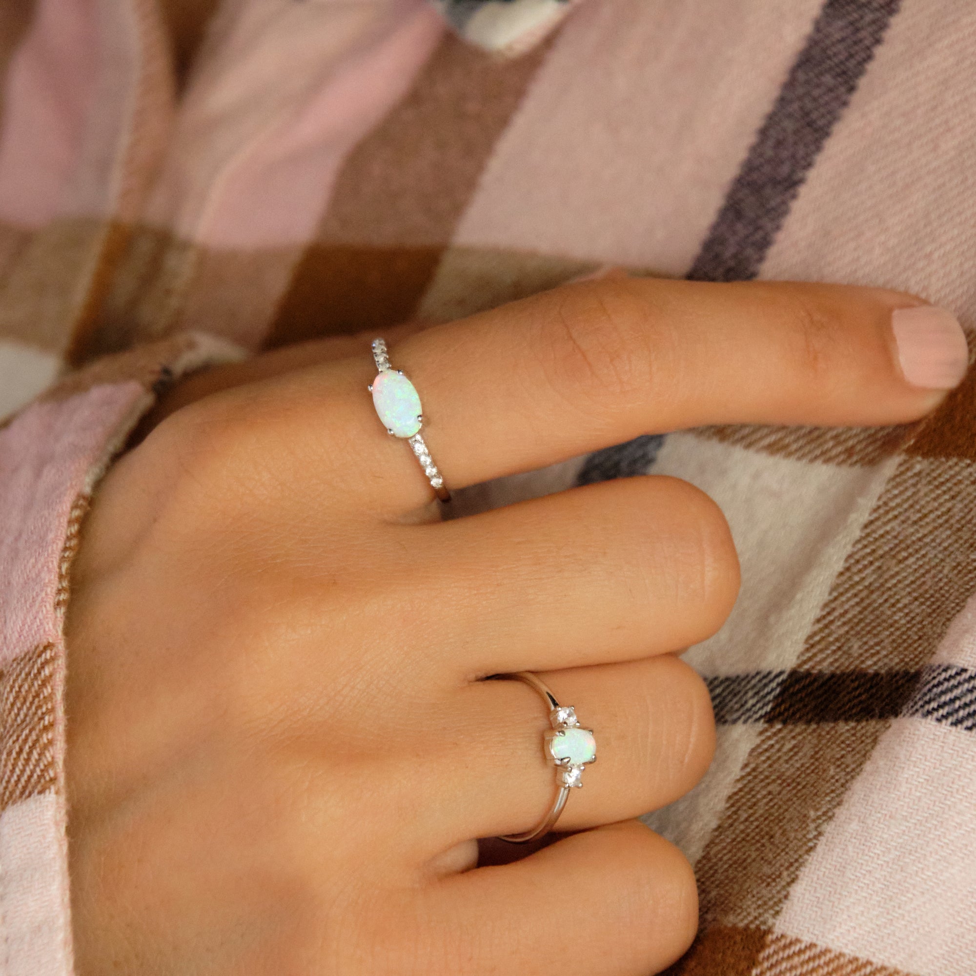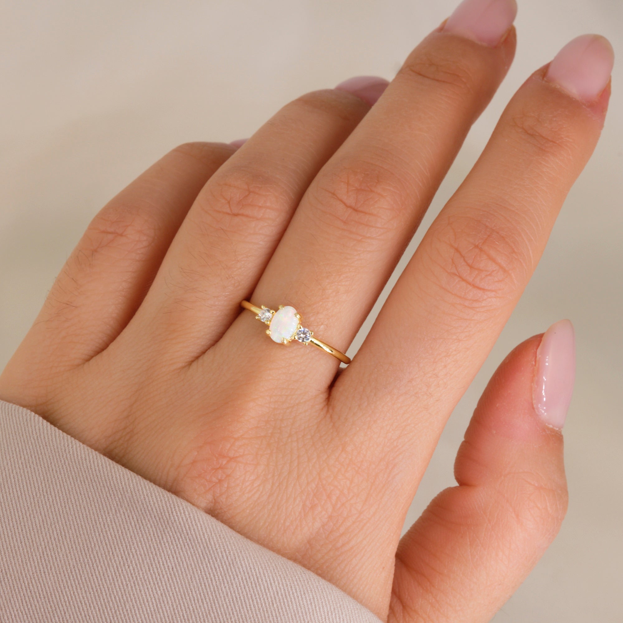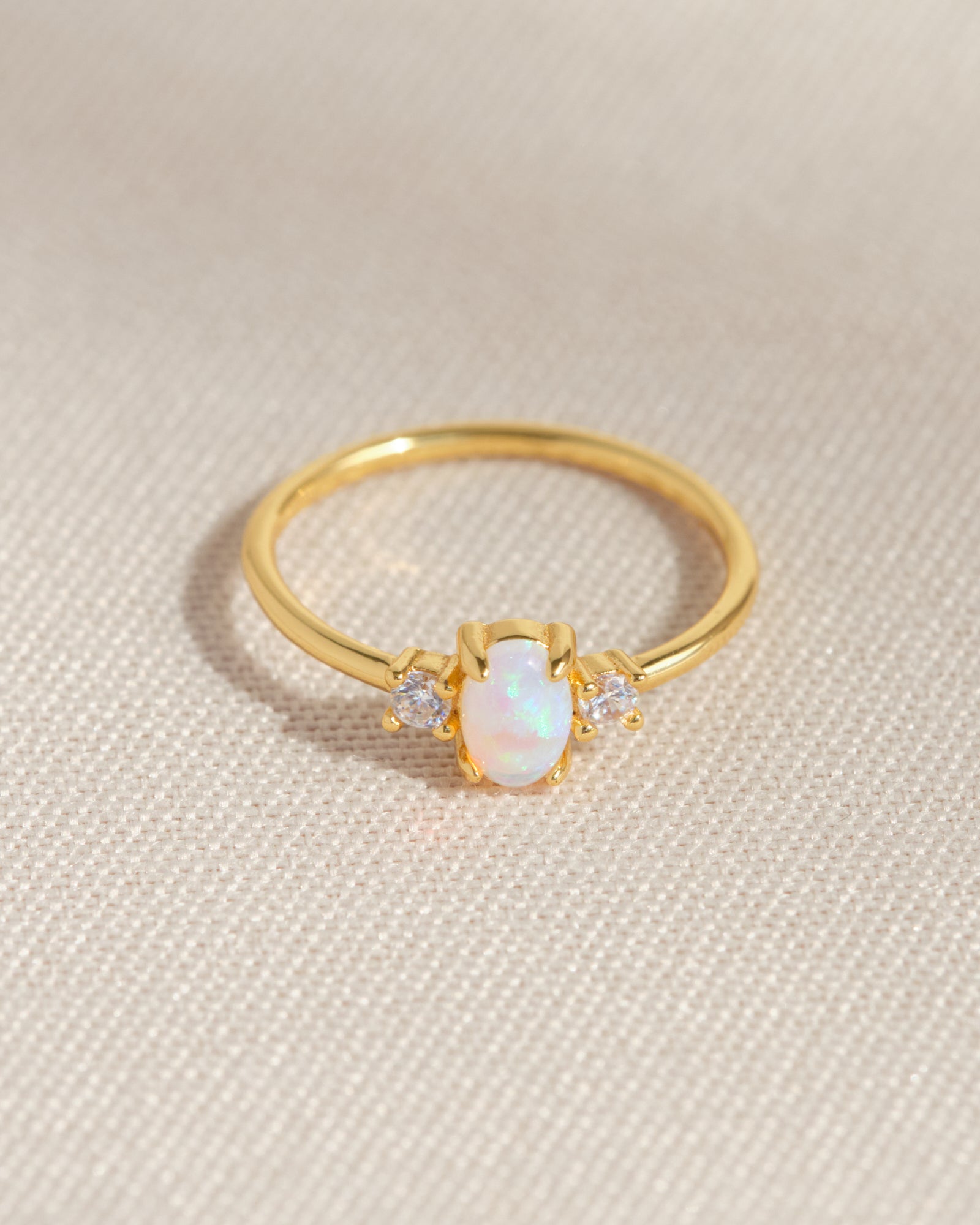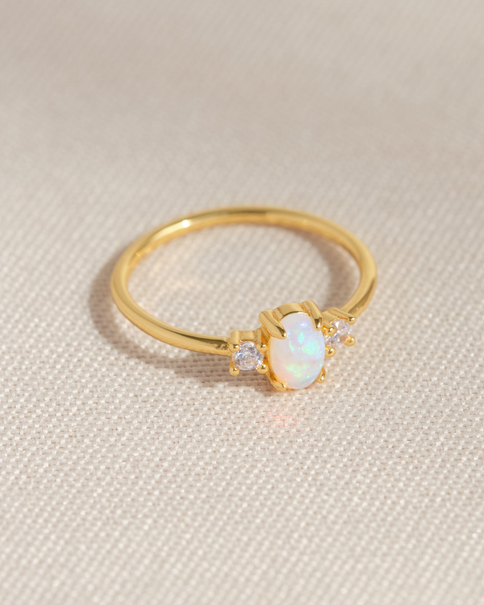 Un anello elegante e prezioso, con opale centrale incorniciato da zirconi bianchi che esaltano la sua luminosità. Raffinato e femminile.