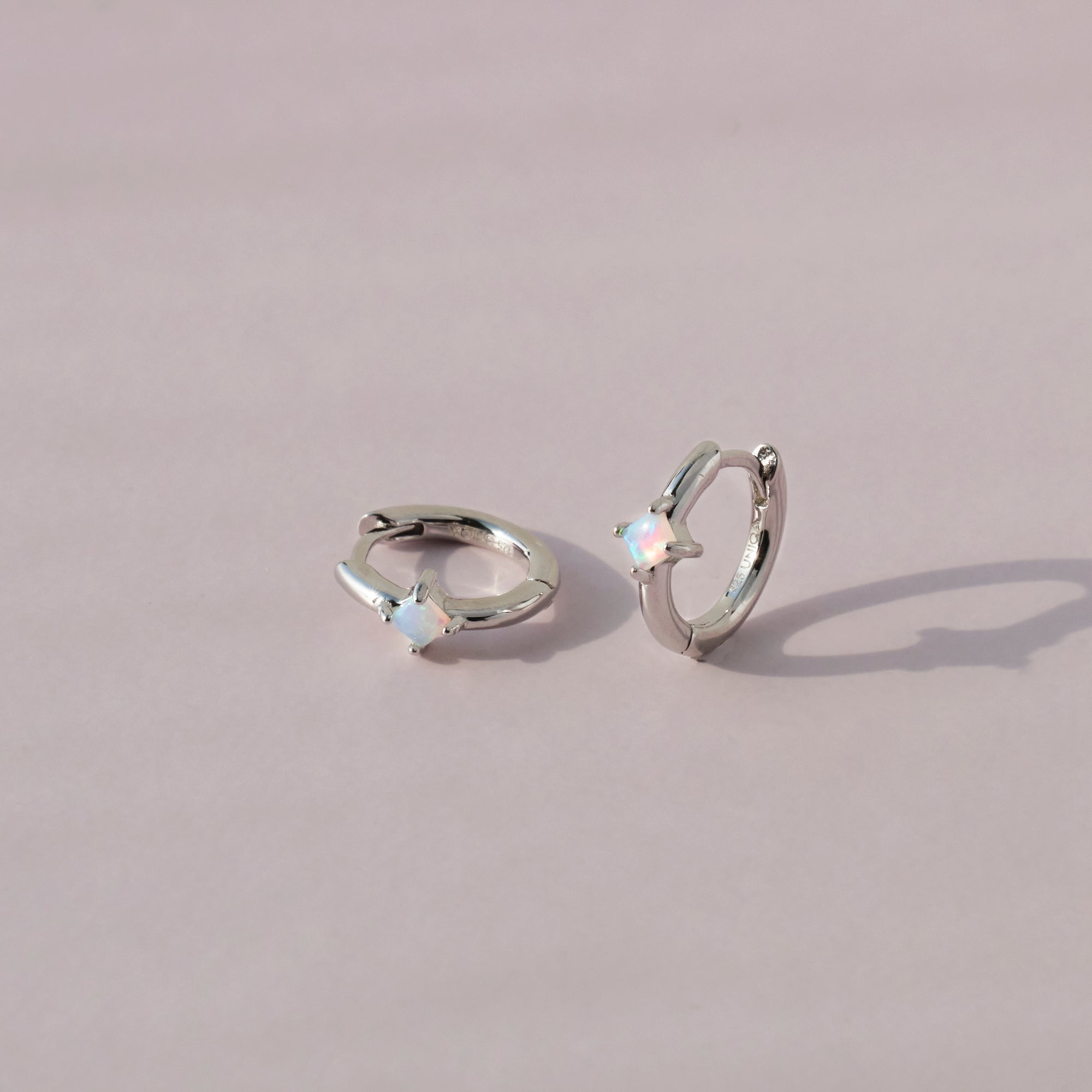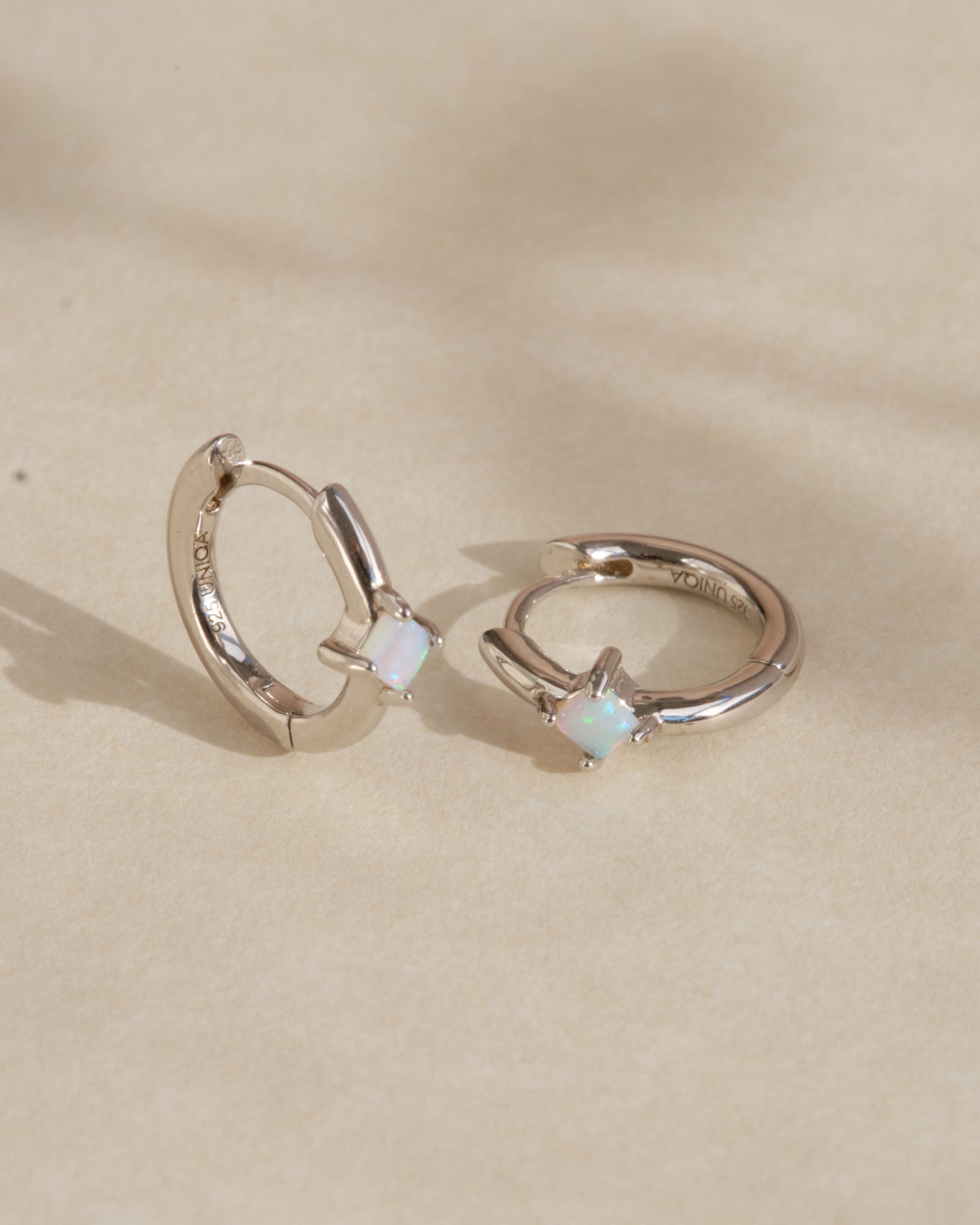 Orecchini a cerchio in argento 925 impreziositi da un opale centrale che cattura la luce con i suoi riflessi delicati. Un design essenziale ma luminoso, perfetto per aggiungere un tocco raffinato e discreto al look quotidiano.