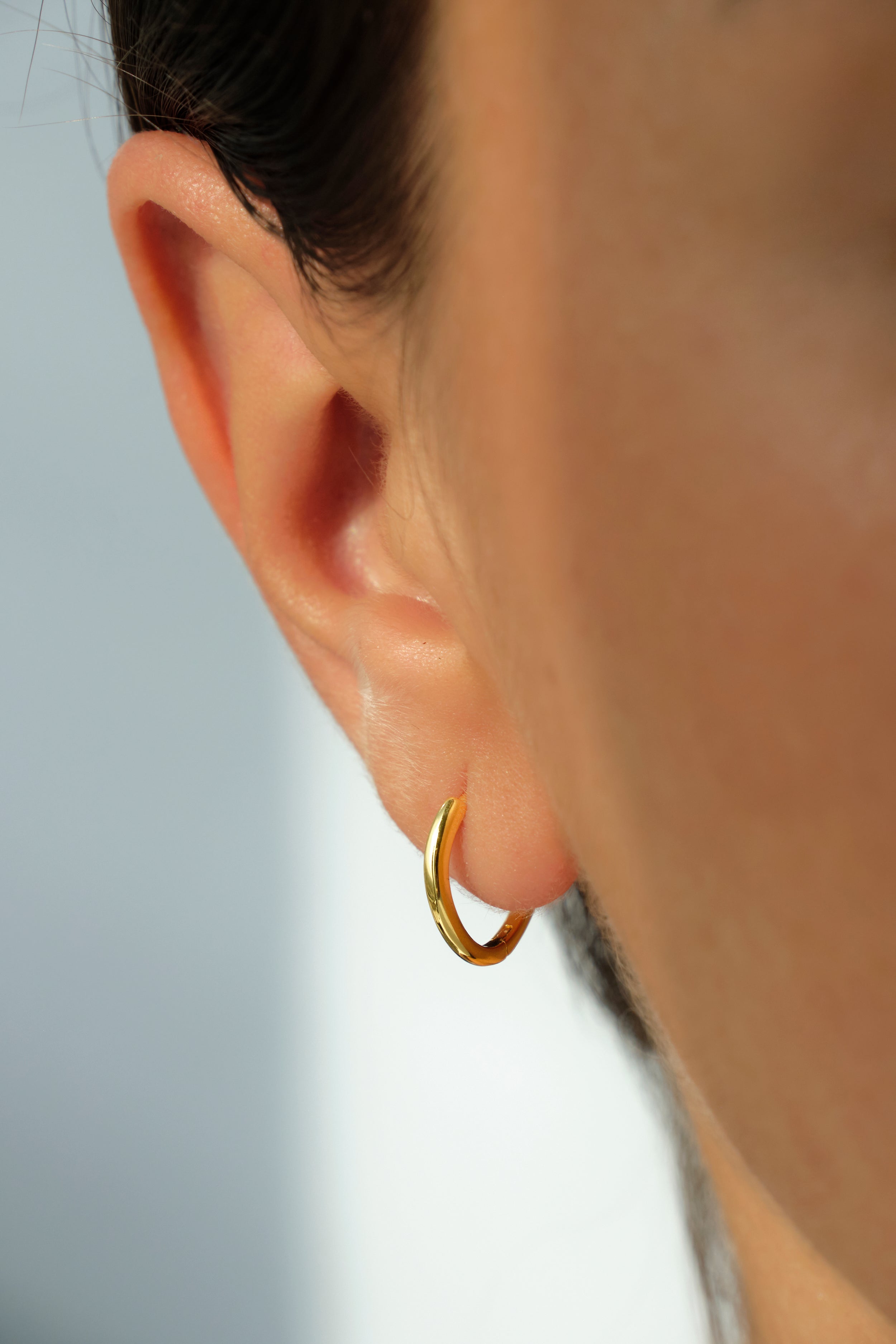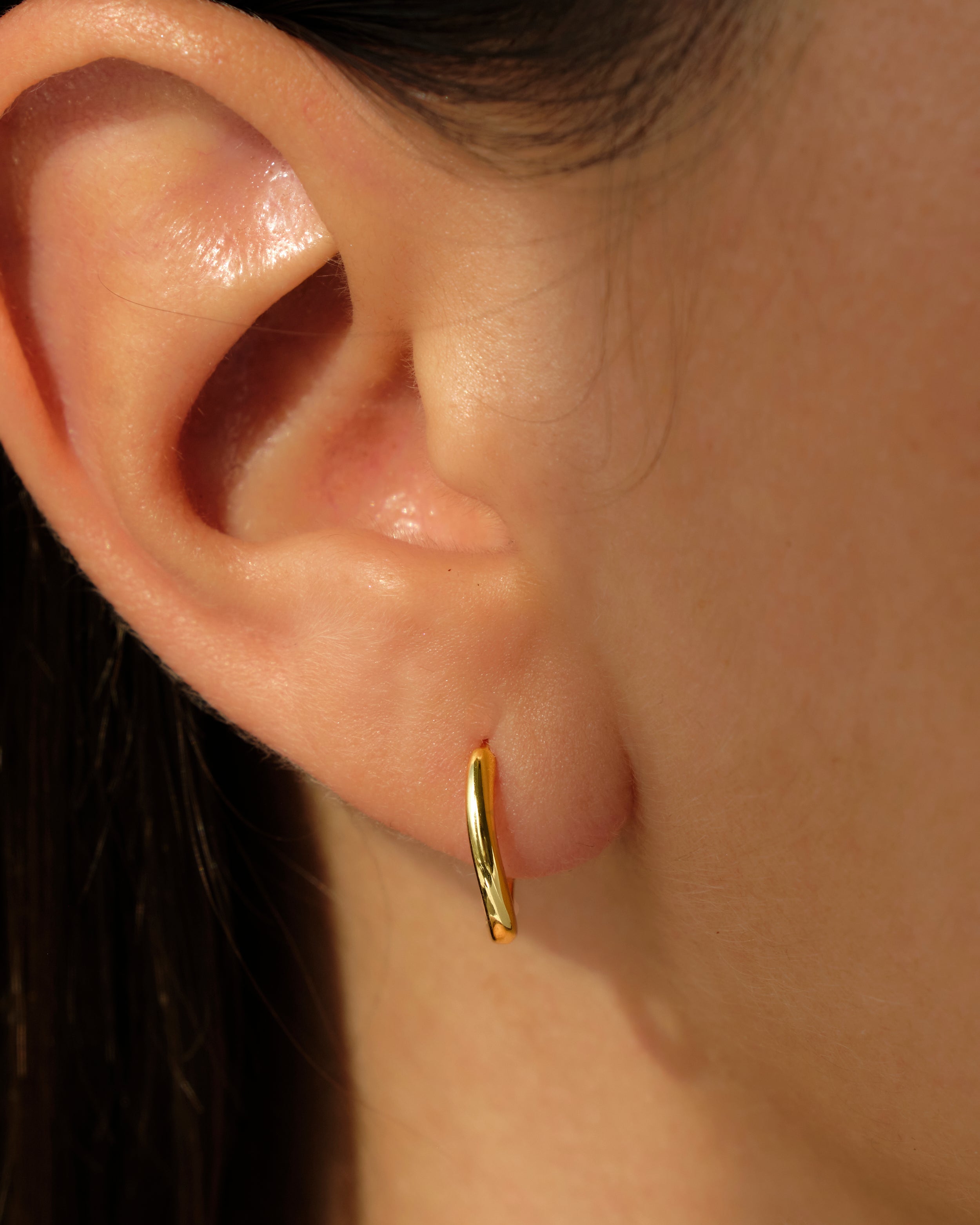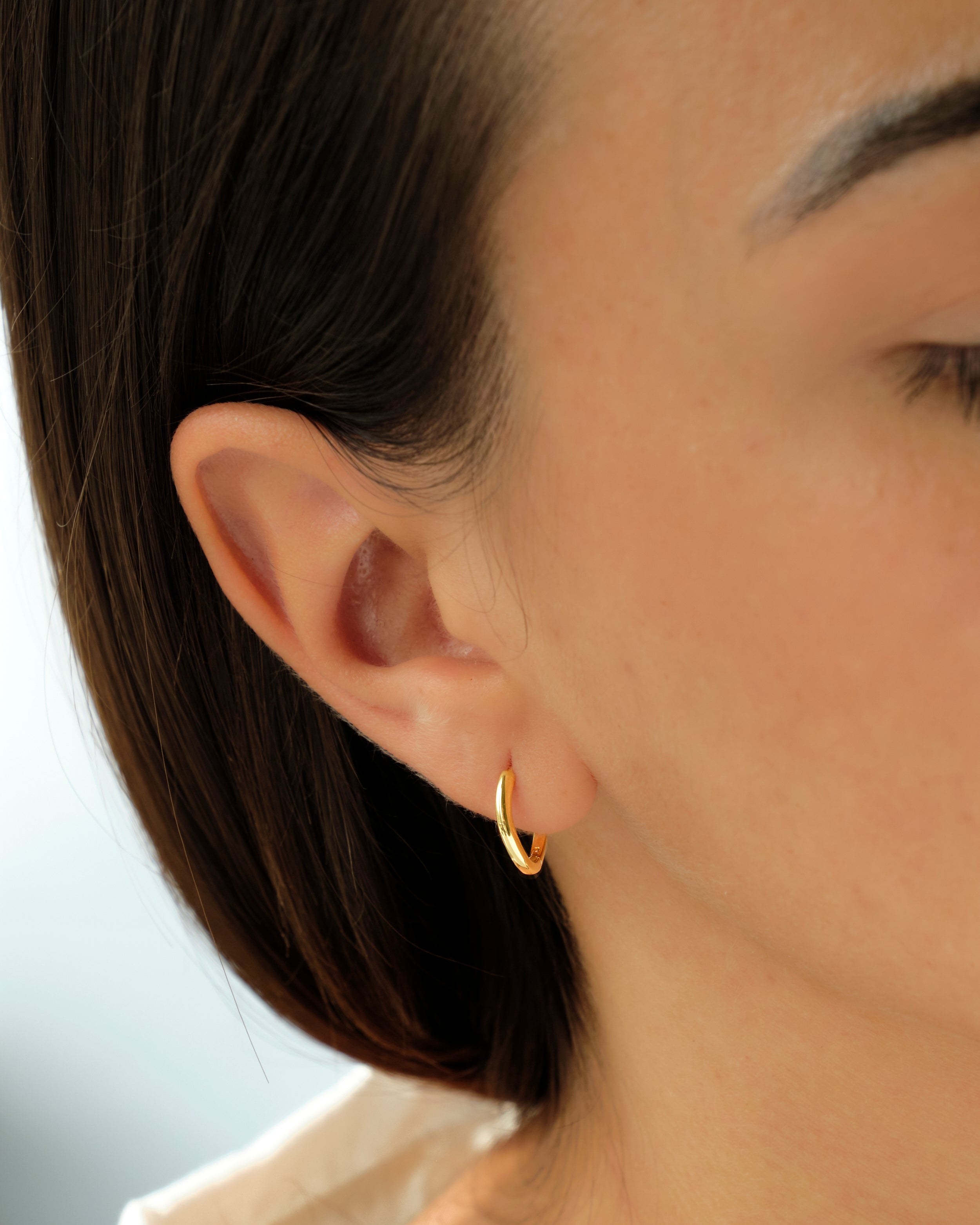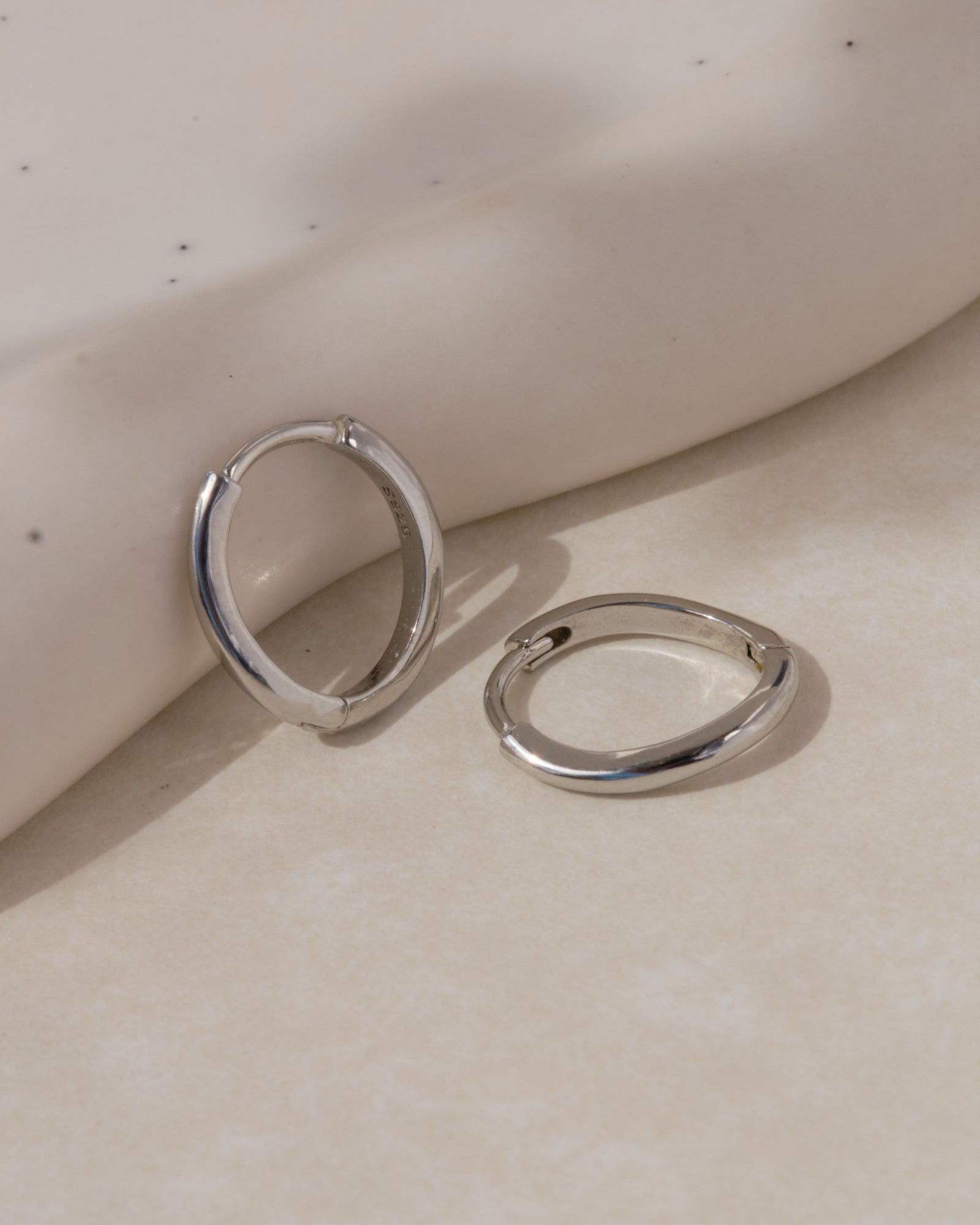 Orecchini a cerchio in argento 925 con placcatura in oro 18K o rodio, dal design essenziale e pulito. La superficie liscia e brillante li rende versatili e ideali da indossare ogni giorno, soli o abbinati ad altri orecchini per un look contemporaneo.
