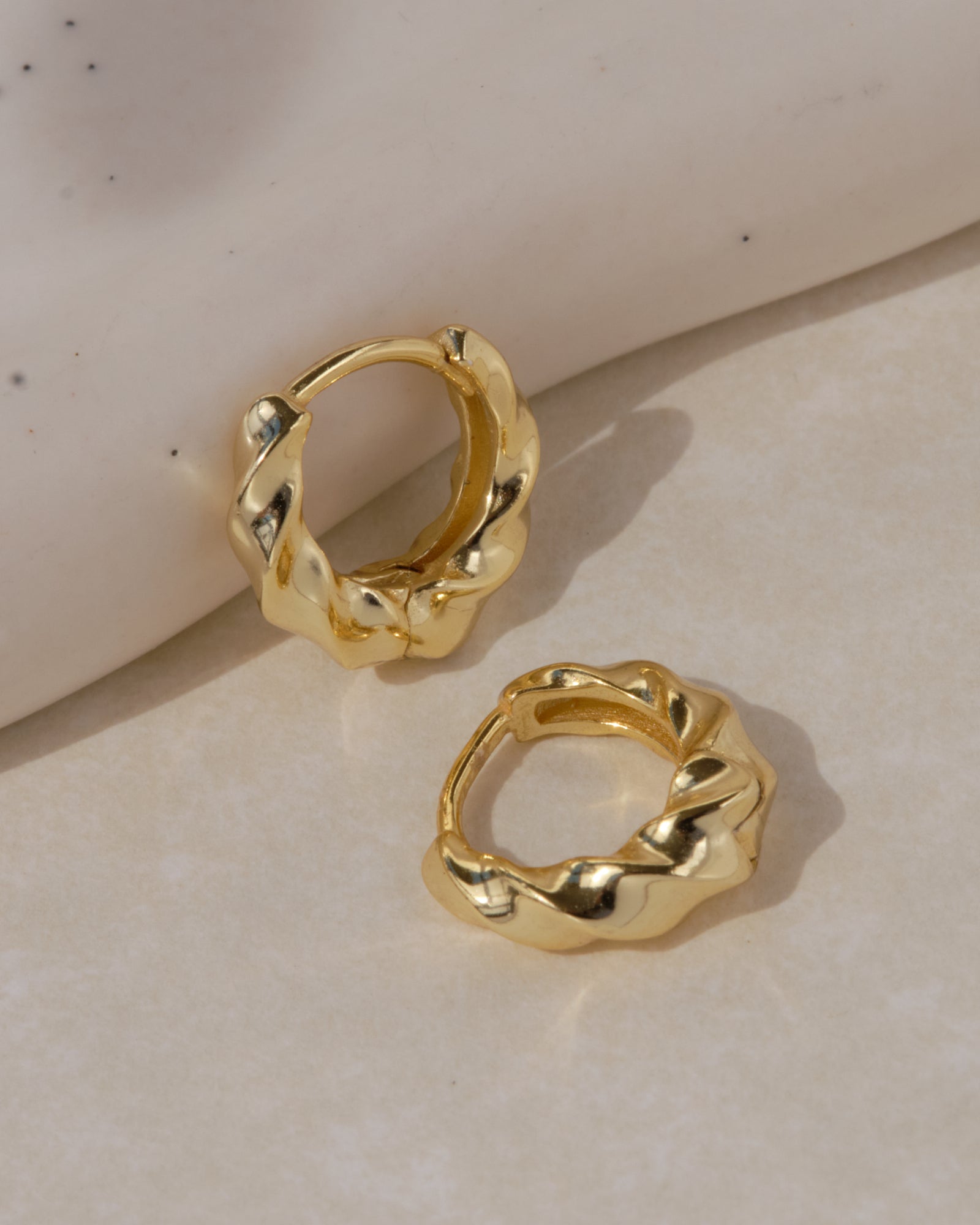 Orecchini a cerchio in argento 925 con placcatura in oro 18K o rodio, dal design scultoreo e irregolare che richiama forme organiche e naturali. Un modello contemporaneo e distintivo, perfetto per chi cerca un accessorio raffinato ma originale.