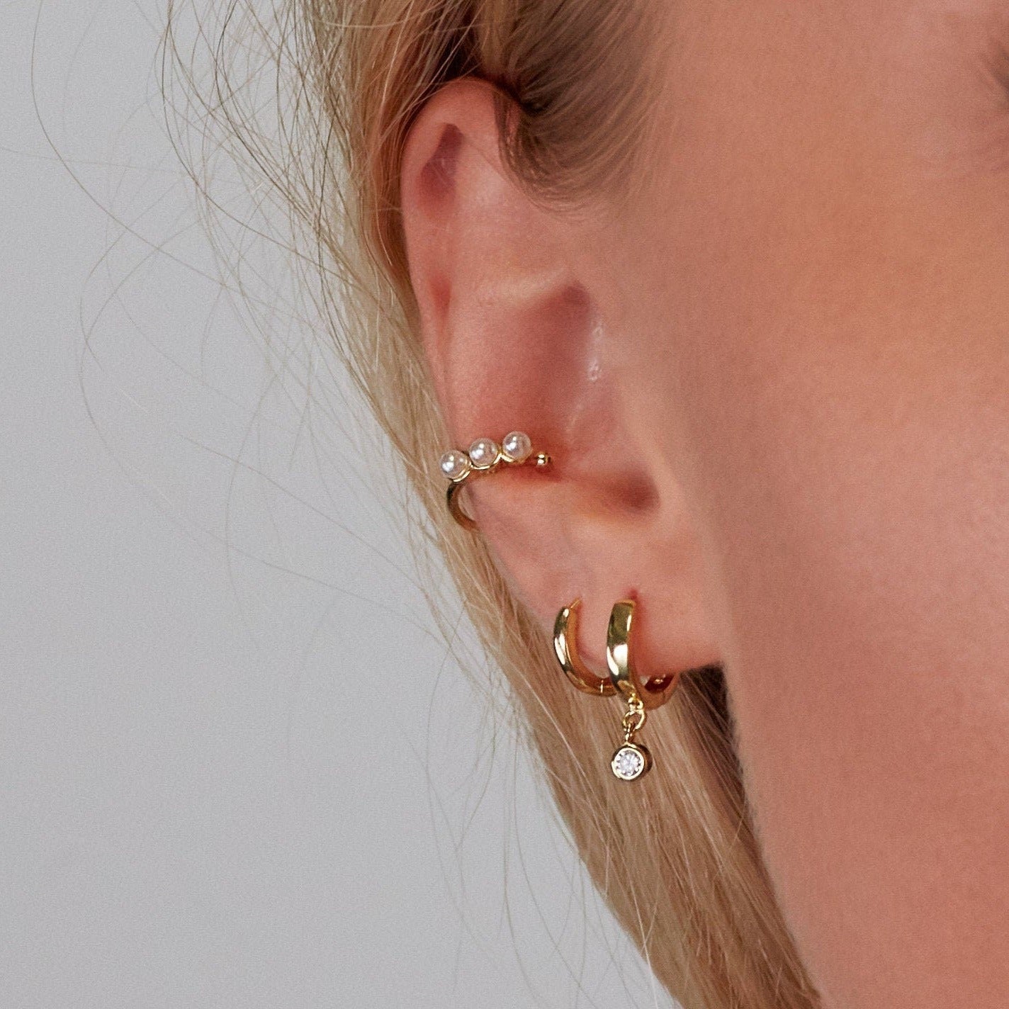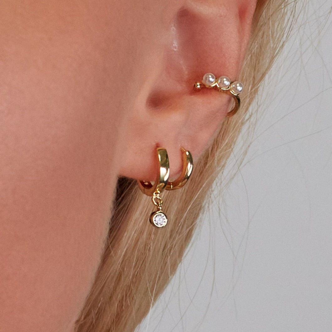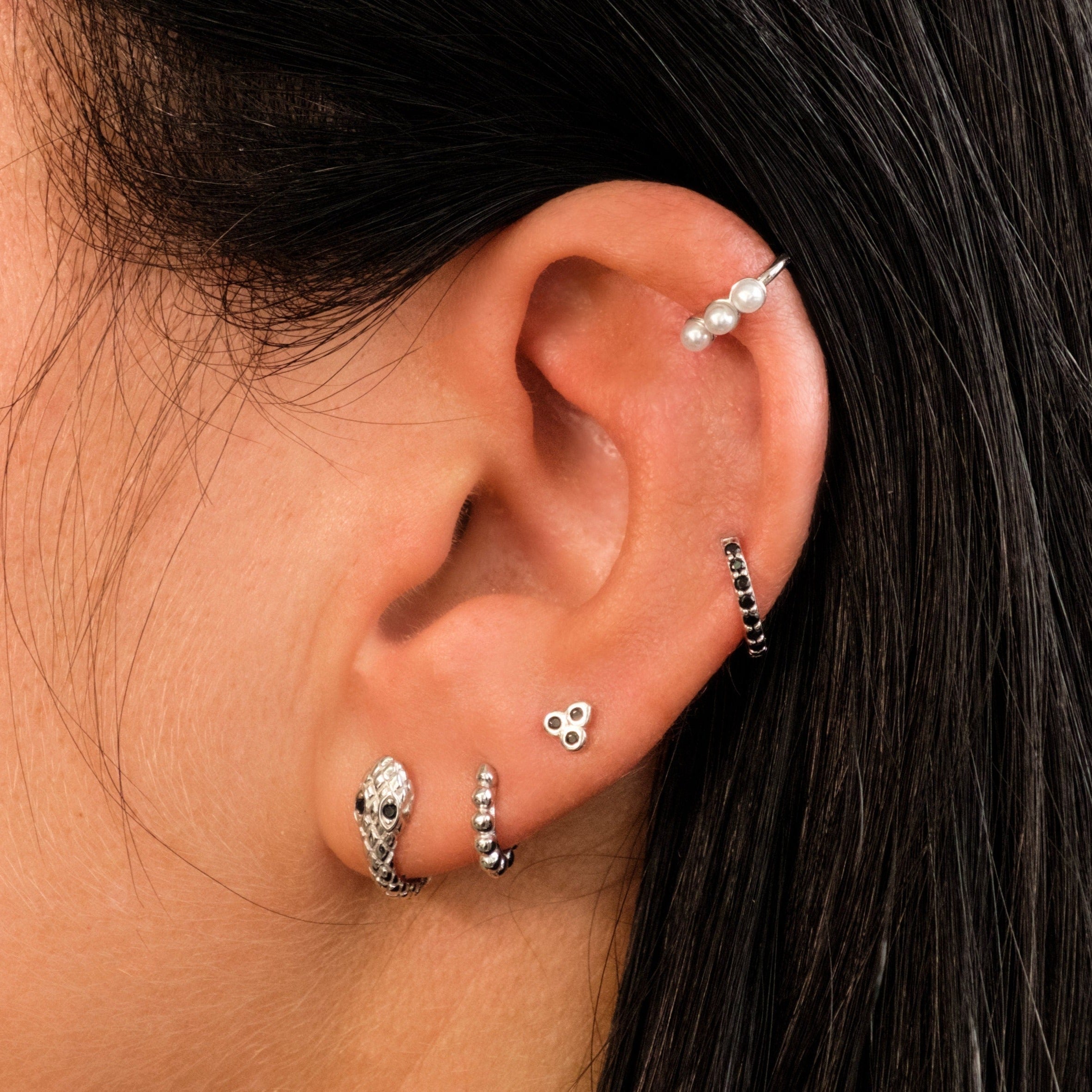 Un ear cuff delicato e luminoso, decorato con tre piccole perle che aggiungono eleganza e armonia al profilo dell’orecchio. Un design raffinato, perfetto per chi ama i dettagli minimal ma distintivi.