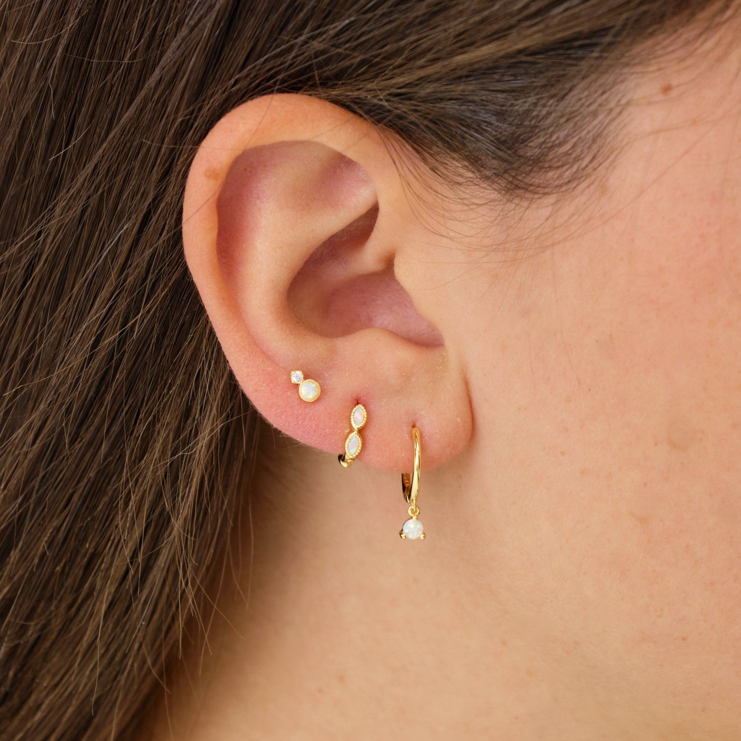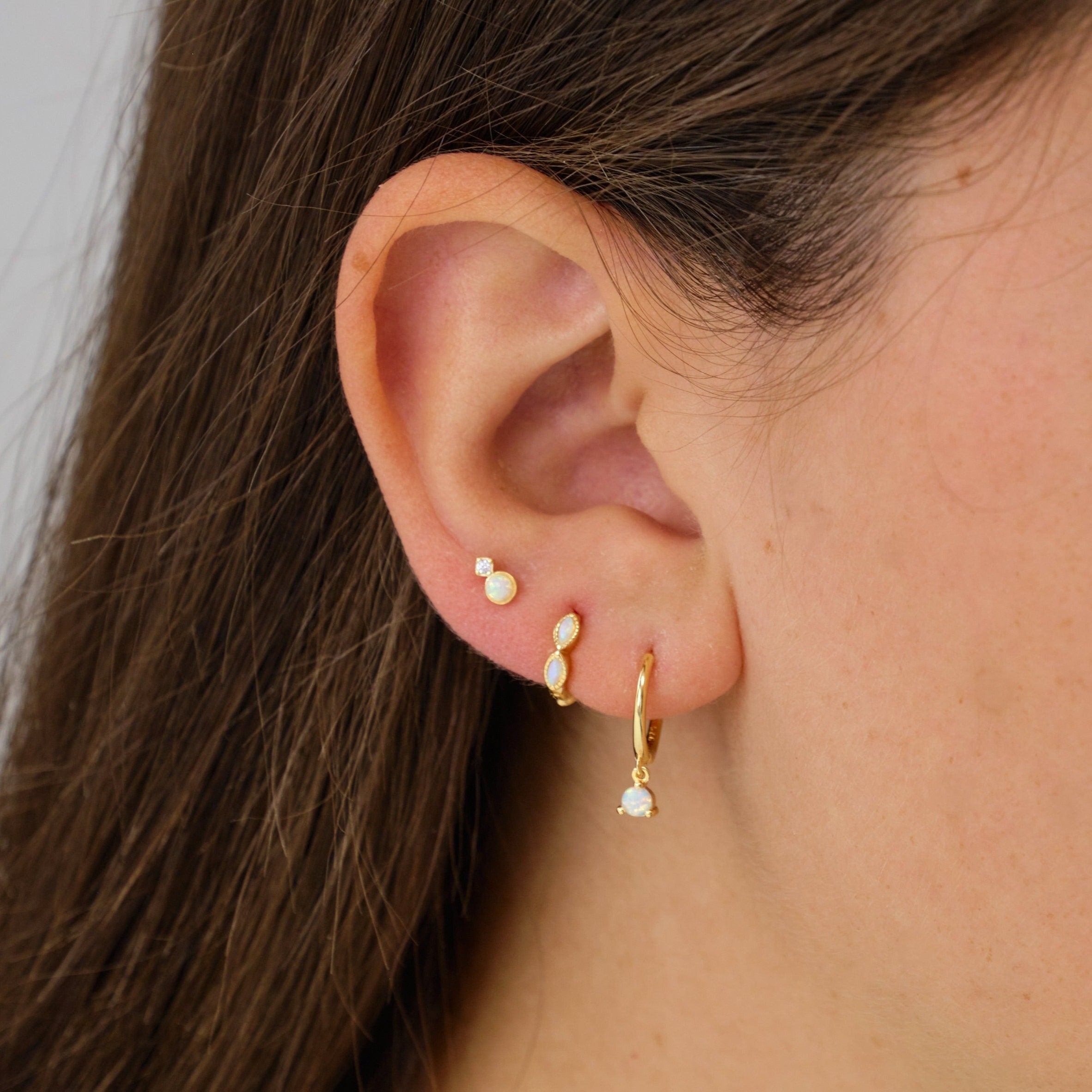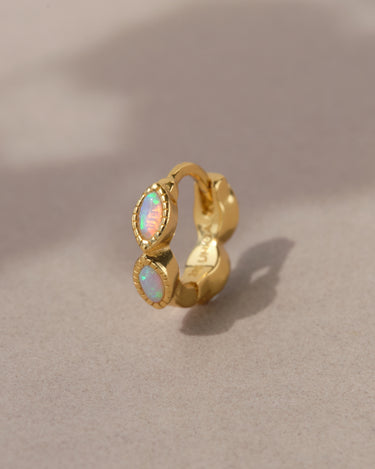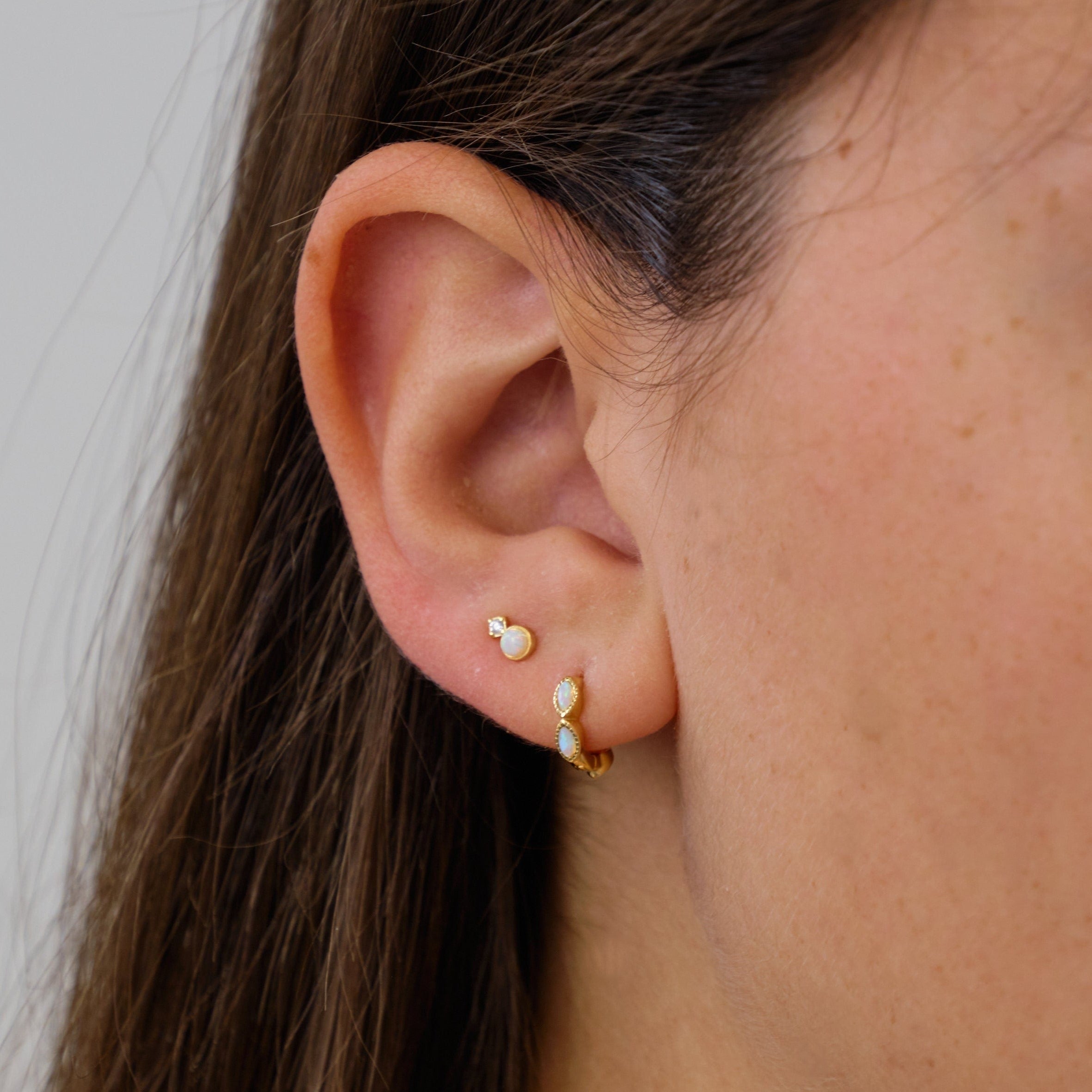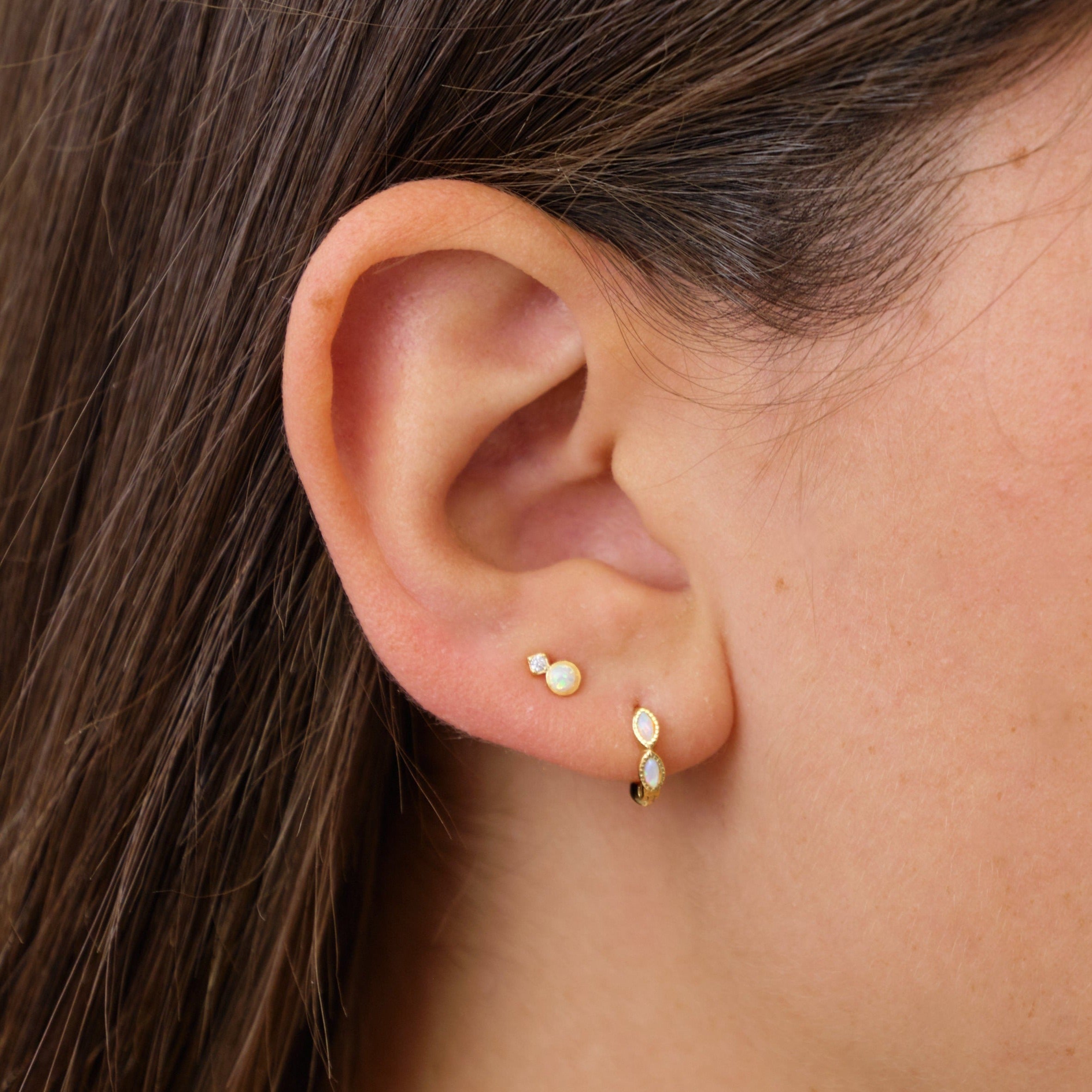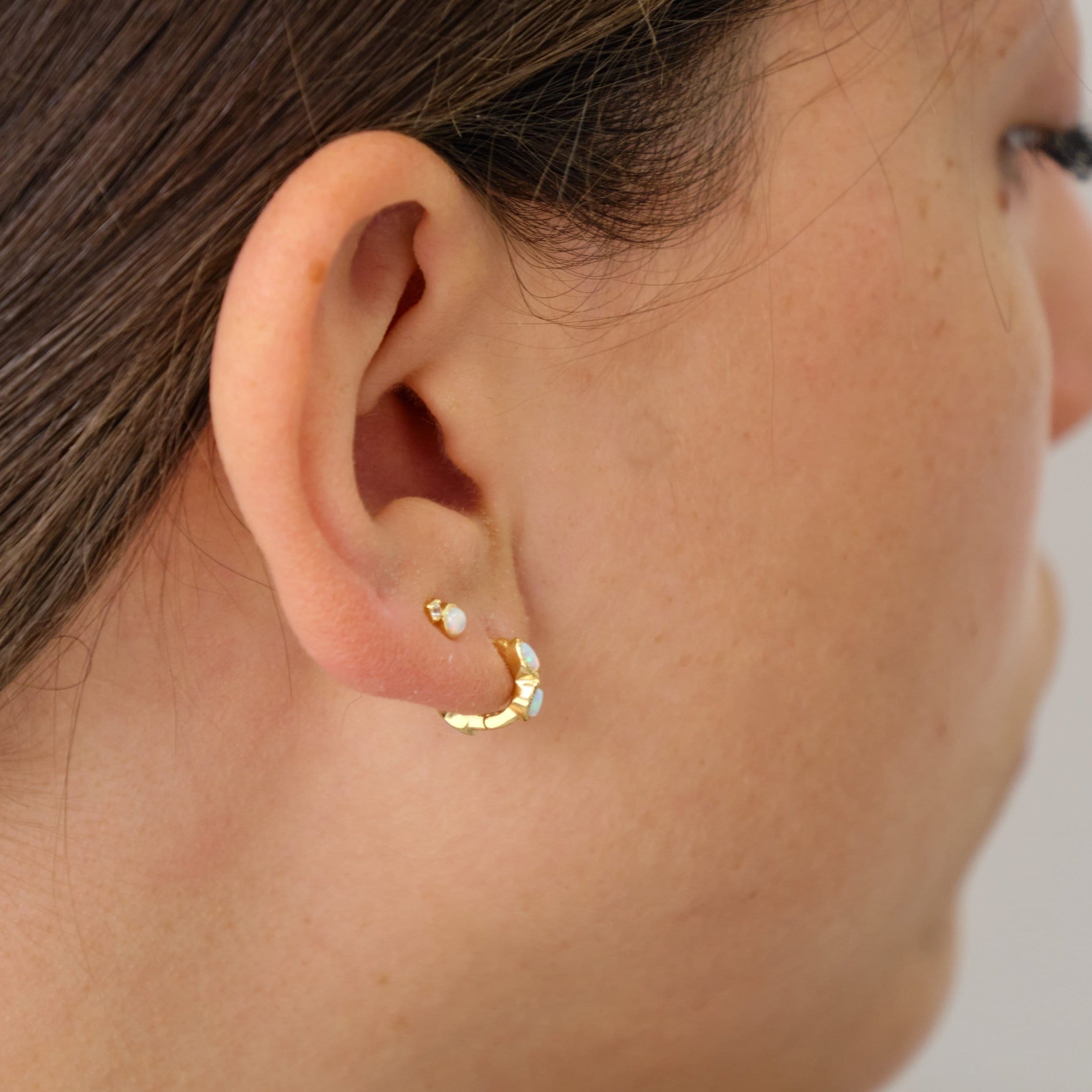 Orecchino singolo mini cerchietto con opale | Argento 925