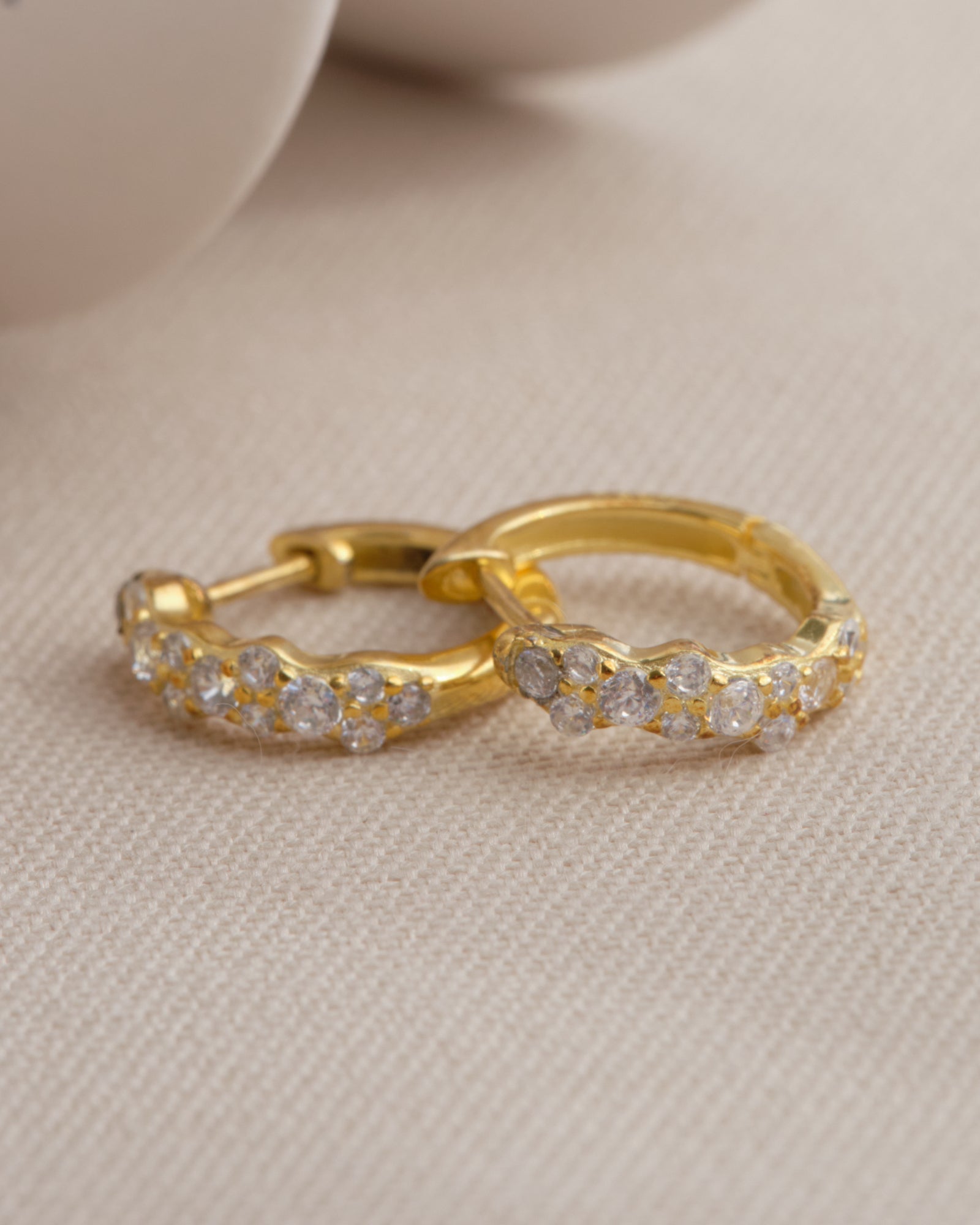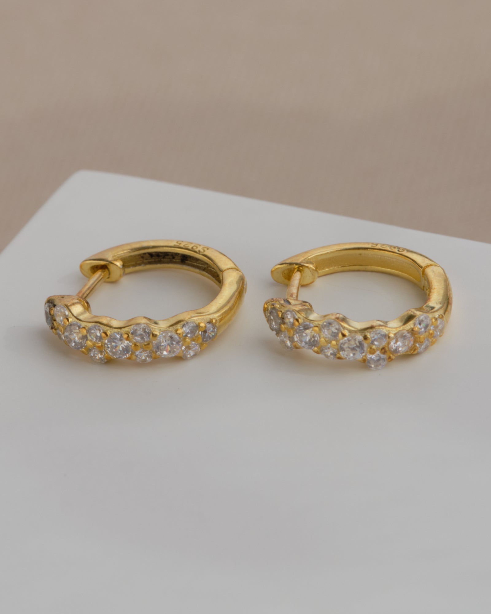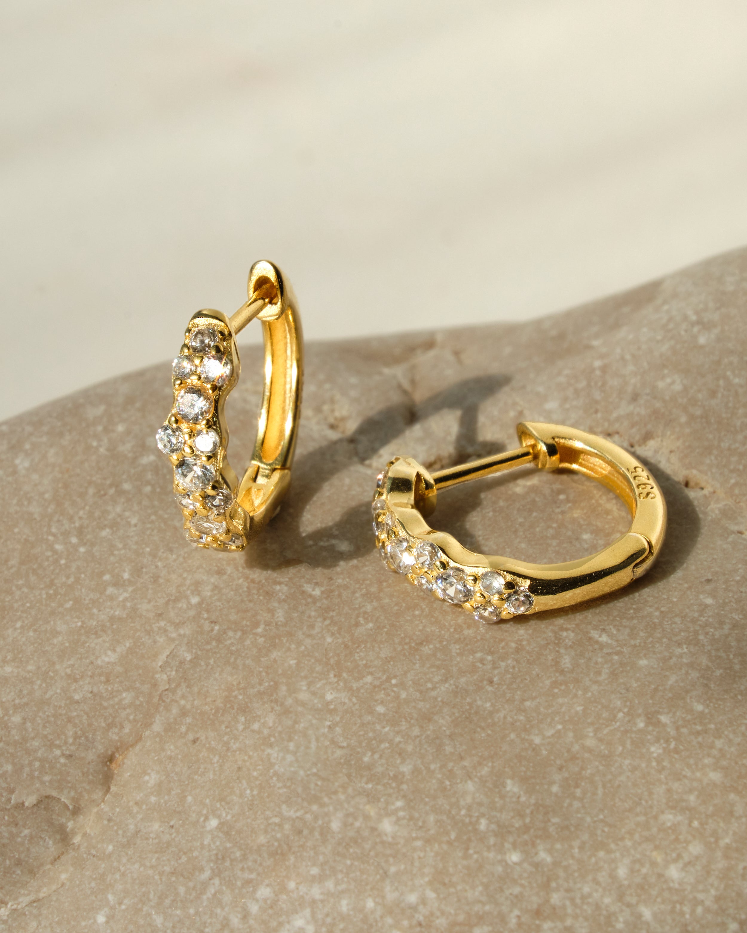 Orecchini a cerchio in argento 925 con placcatura in oro 18K o rodio, arricchiti da zirconi bianchi incastonati a pavé che donano brillantezza e luce ad ogni look. Eleganti e raffinati, sono perfetti per chi ama i dettagli preziosi e luminosi.