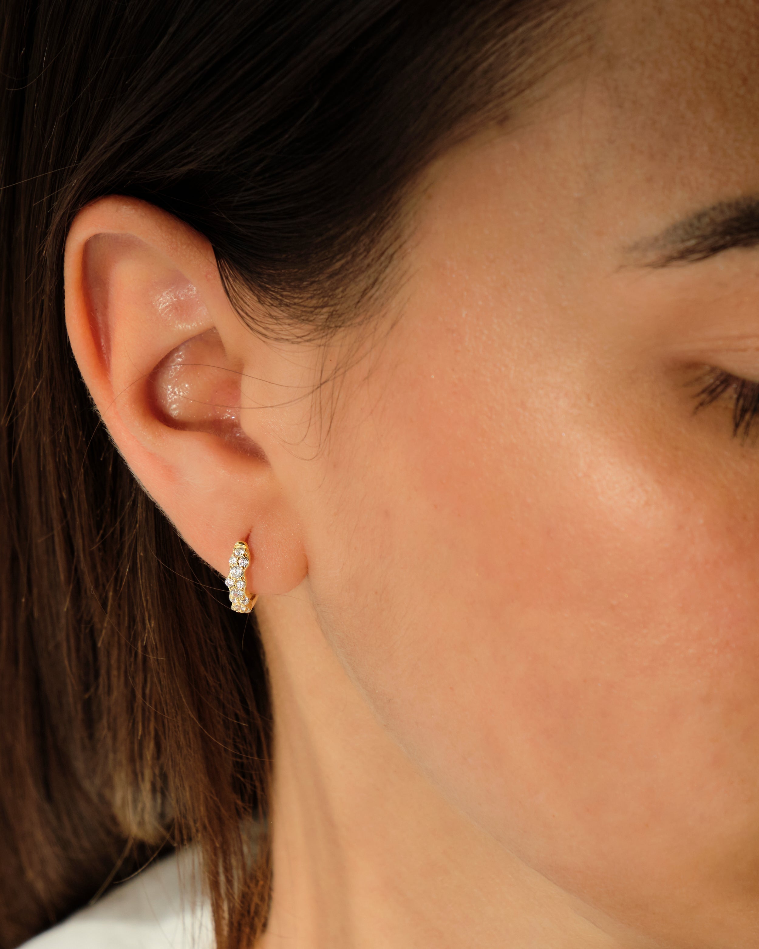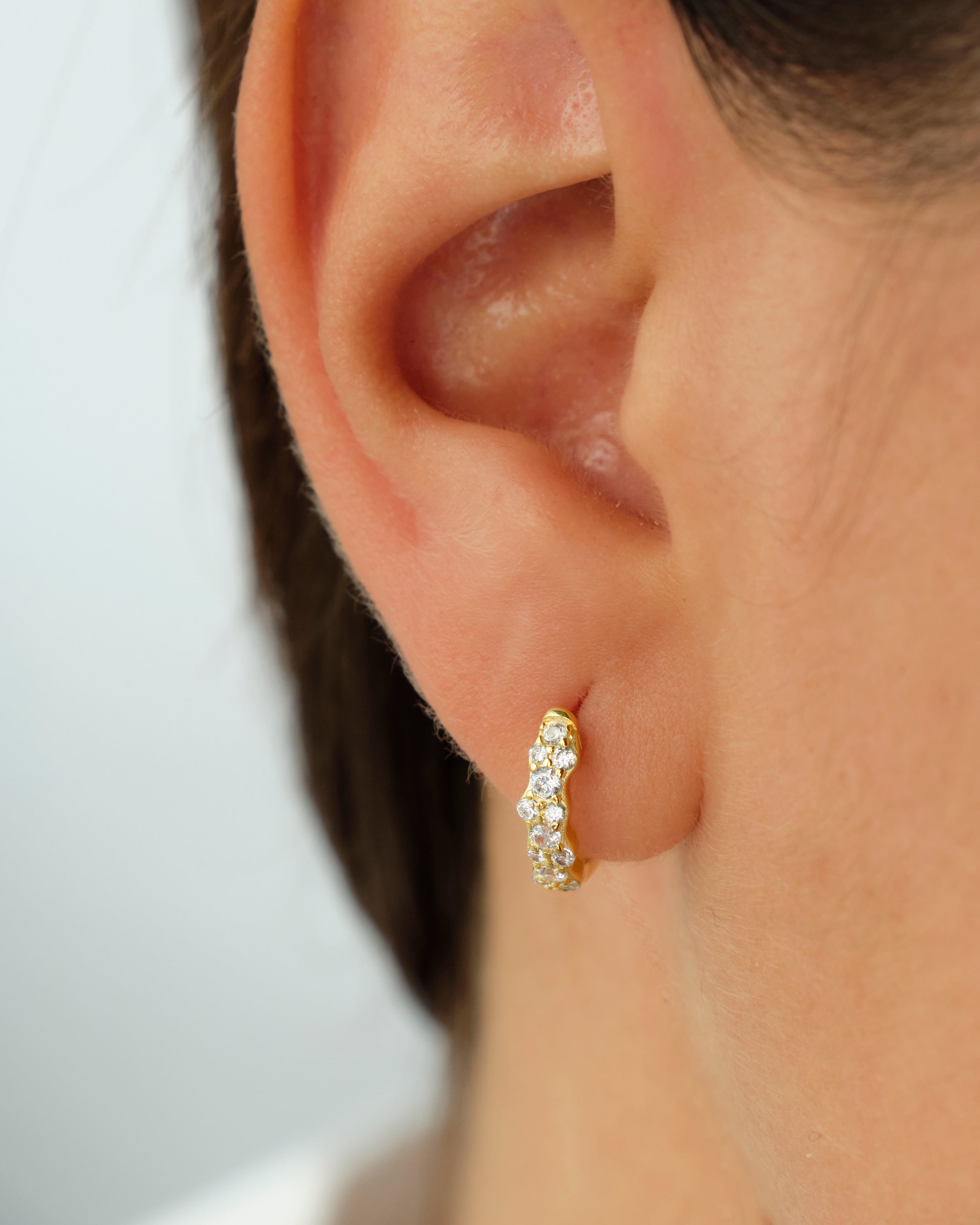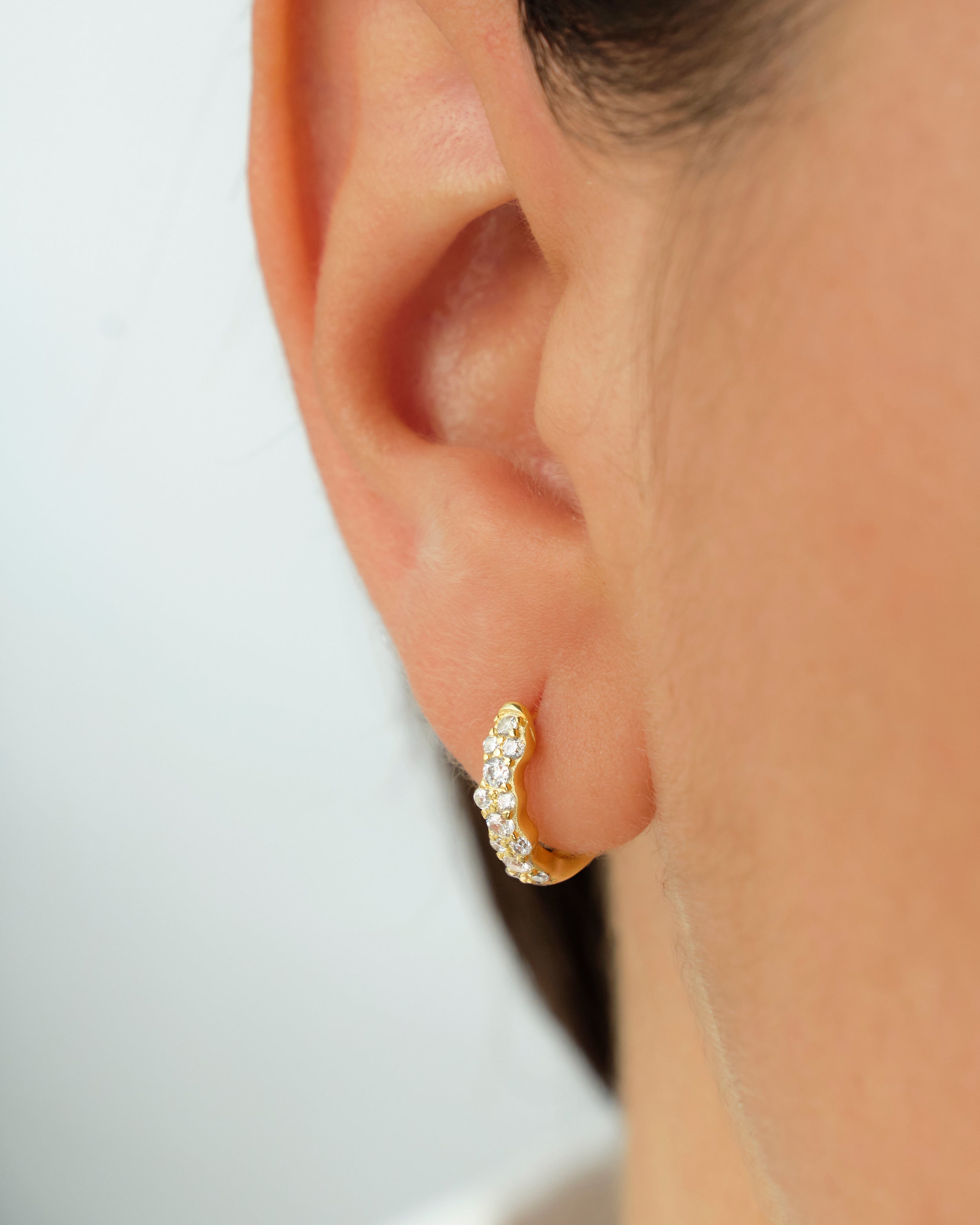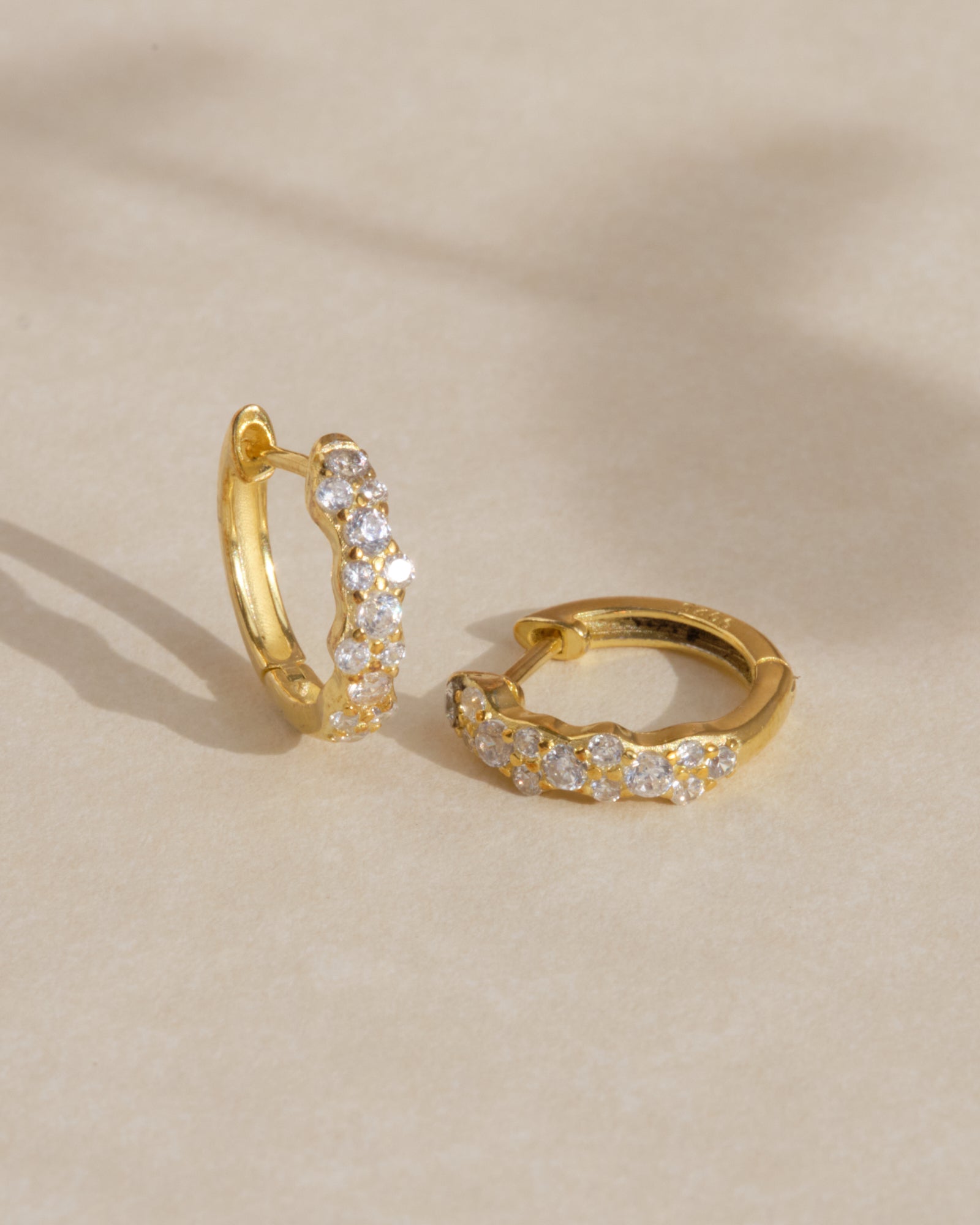 Orecchini a cerchio in argento 925 con placcatura in oro 18K o rodio, arricchiti da zirconi bianchi incastonati a pavé che donano brillantezza e luce ad ogni look. Eleganti e raffinati, sono perfetti per chi ama i dettagli preziosi e luminosi.