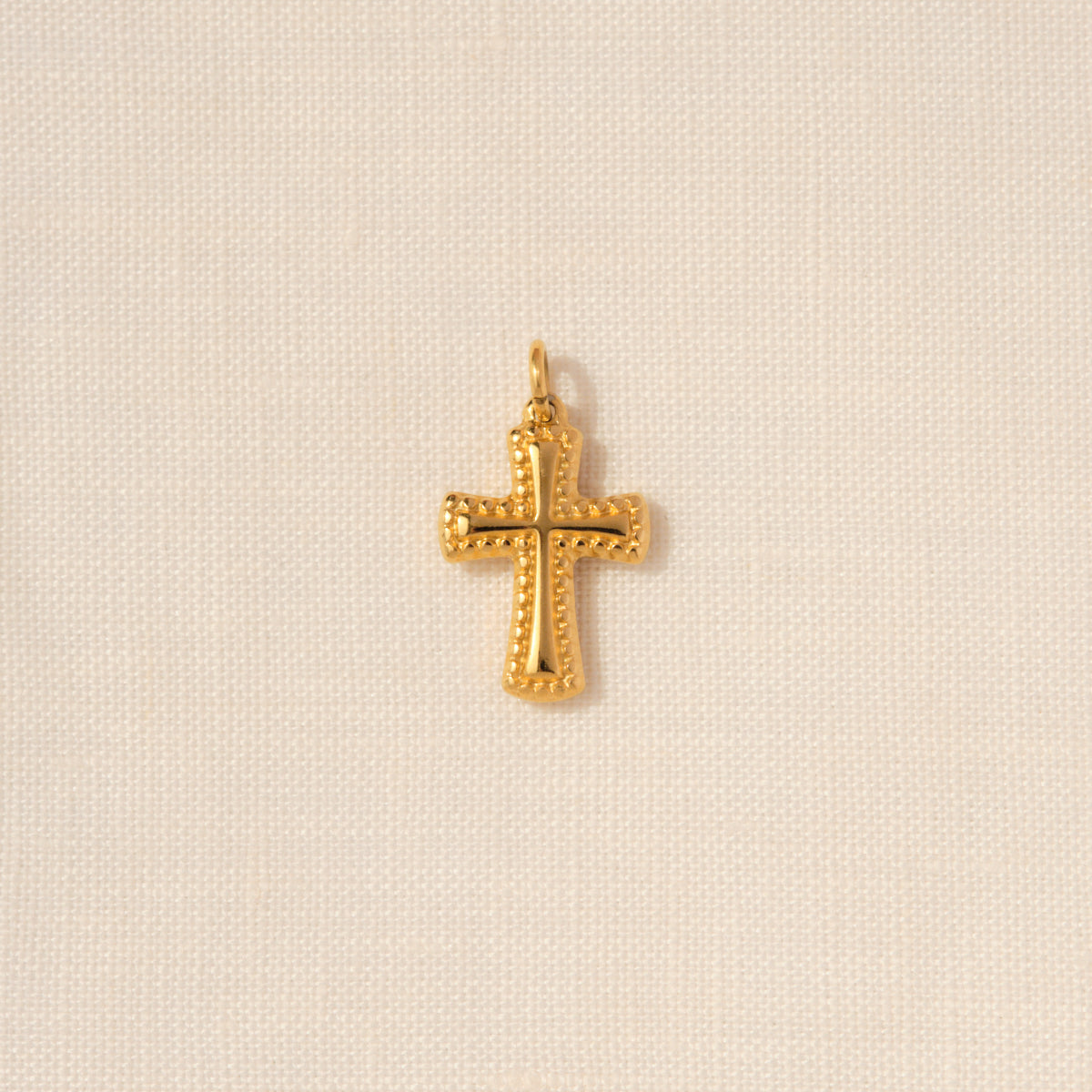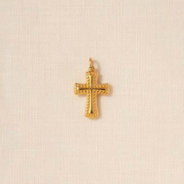 Una croce dorata con rilievi decorativi, simbolo intramontabile d’eleganza.
