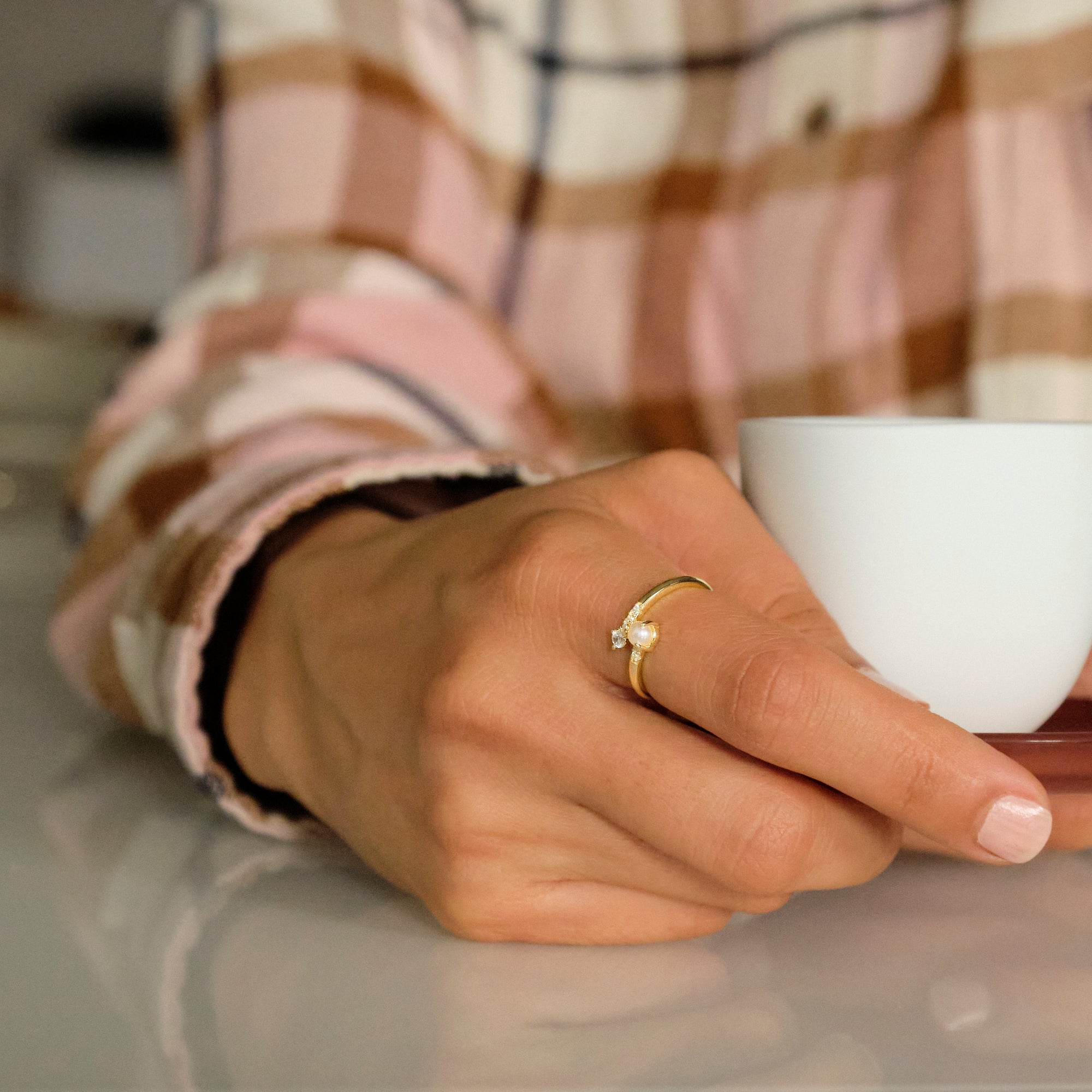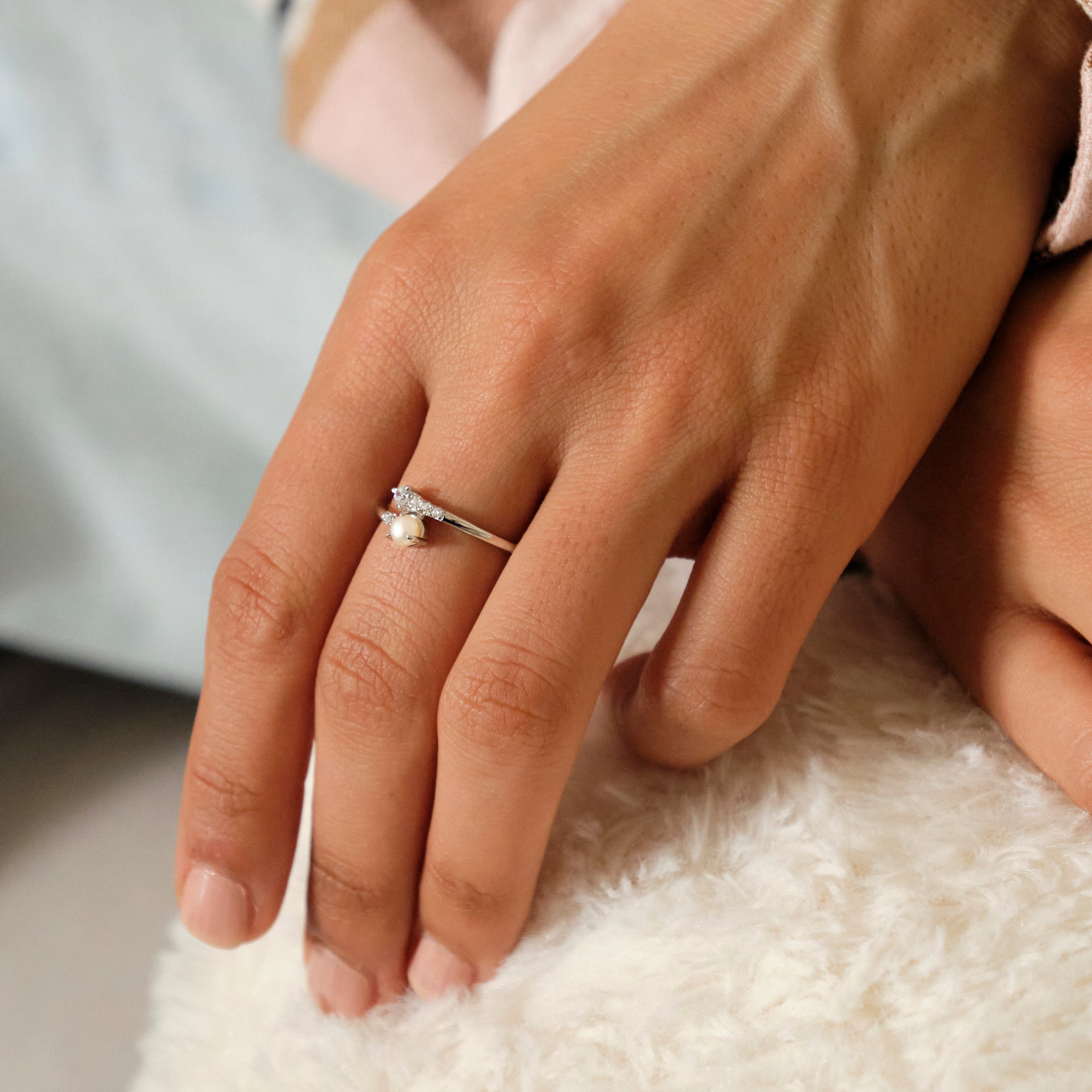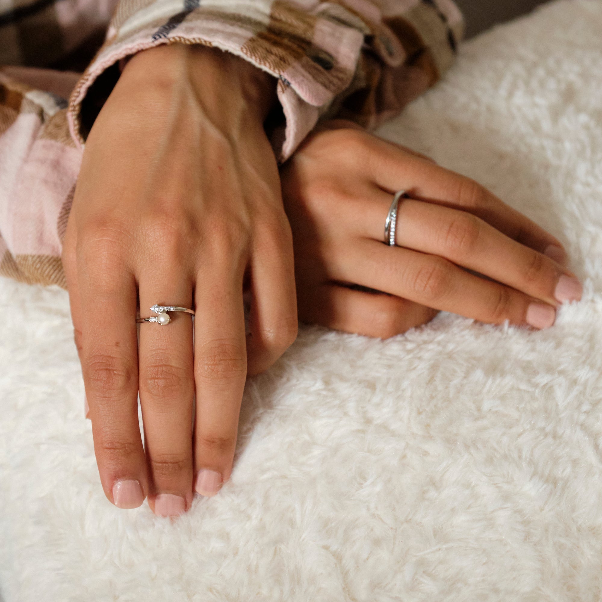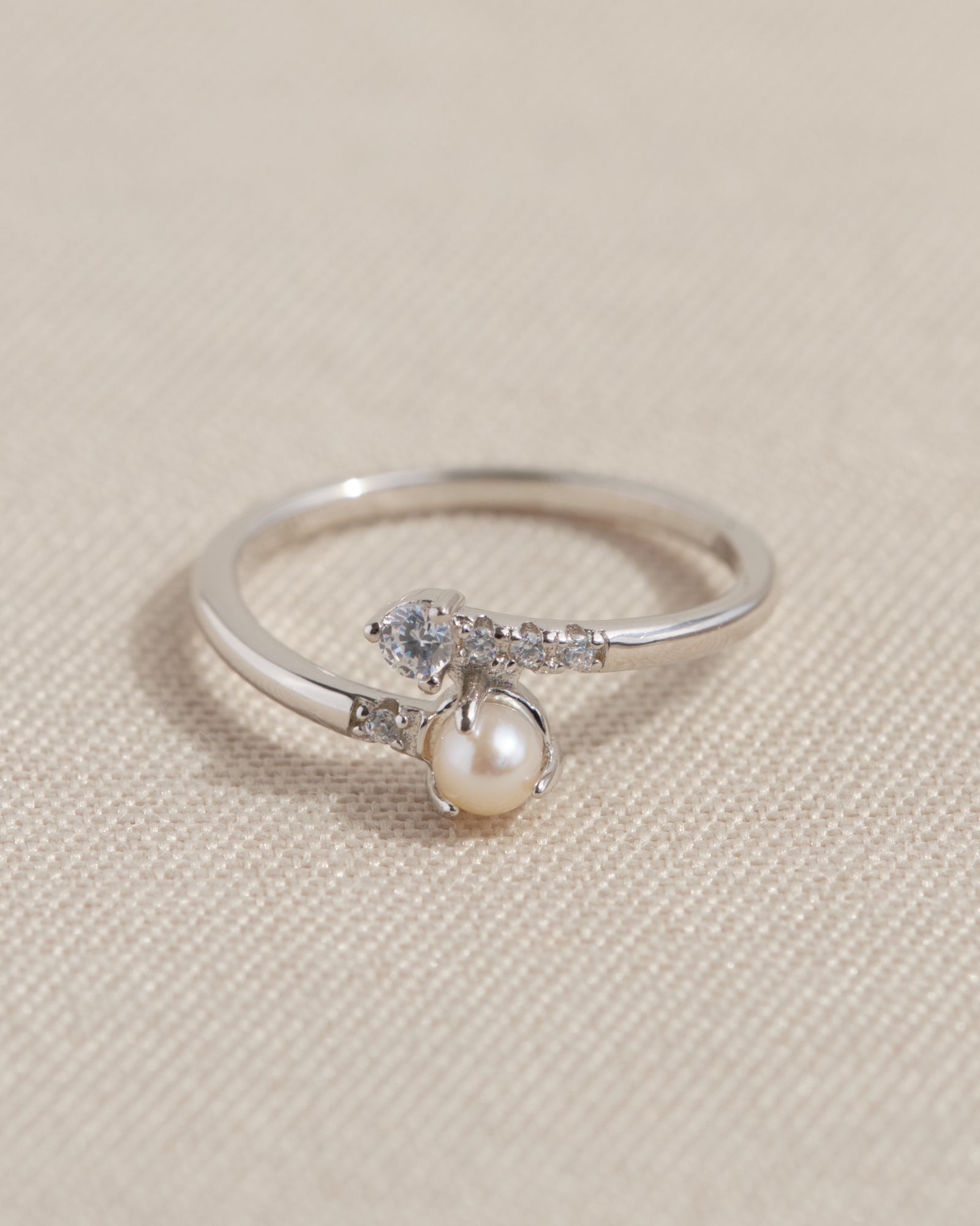 Un anello raffinato e femminile, decorato con perla e zirconi bianchi che donano luminosità e armonia. Perfetto per un tocco di classe quotidiano.