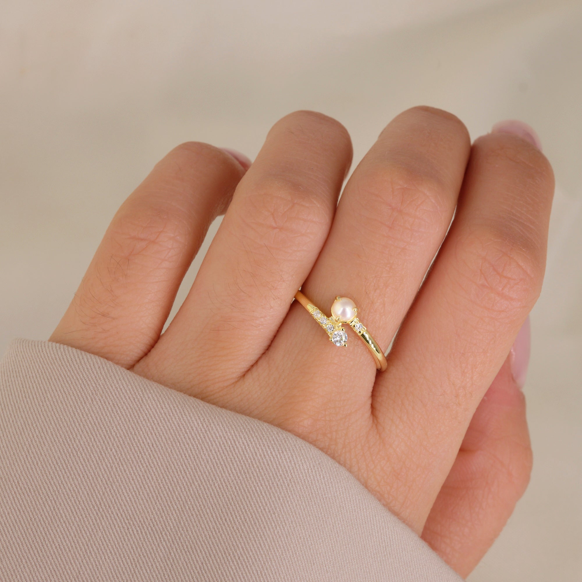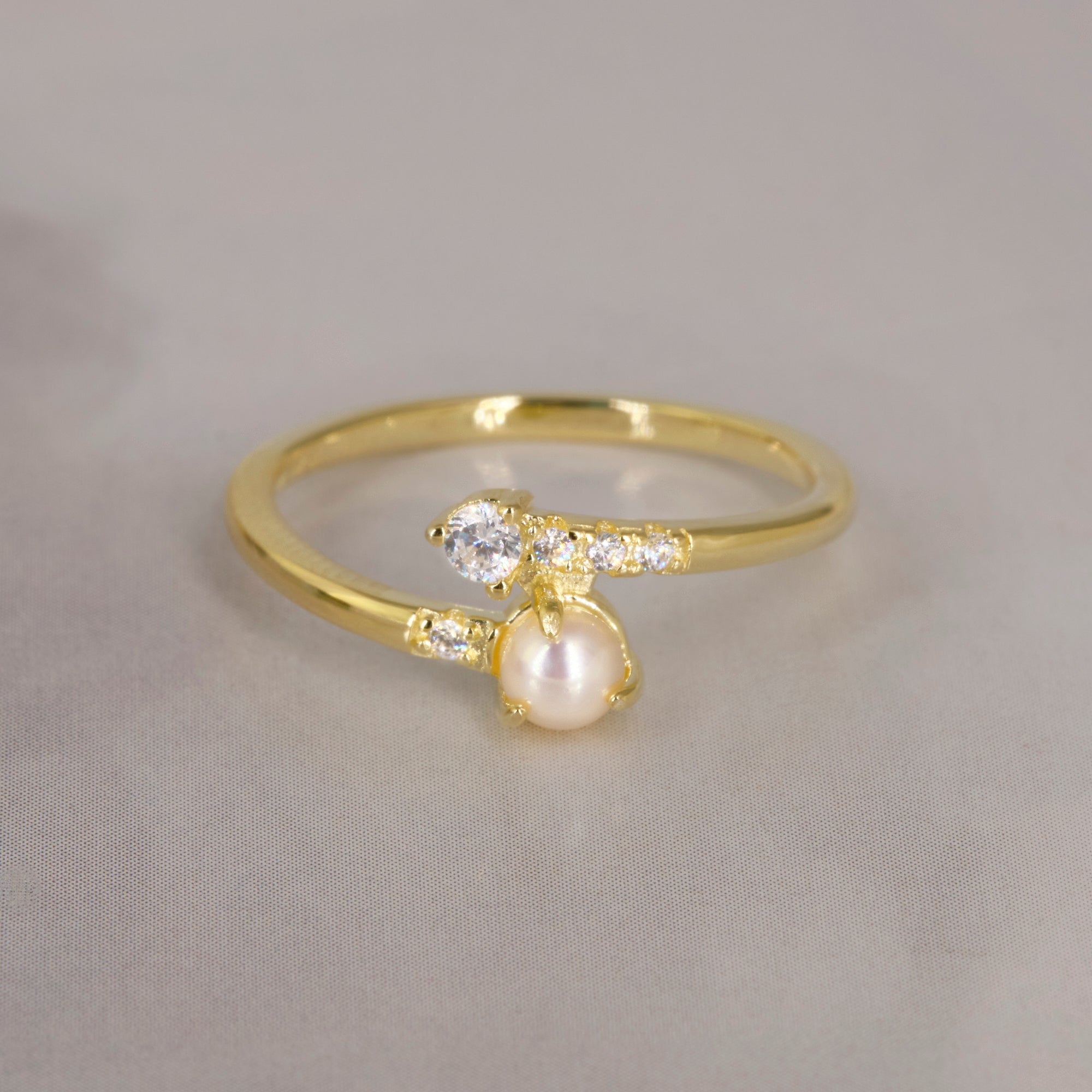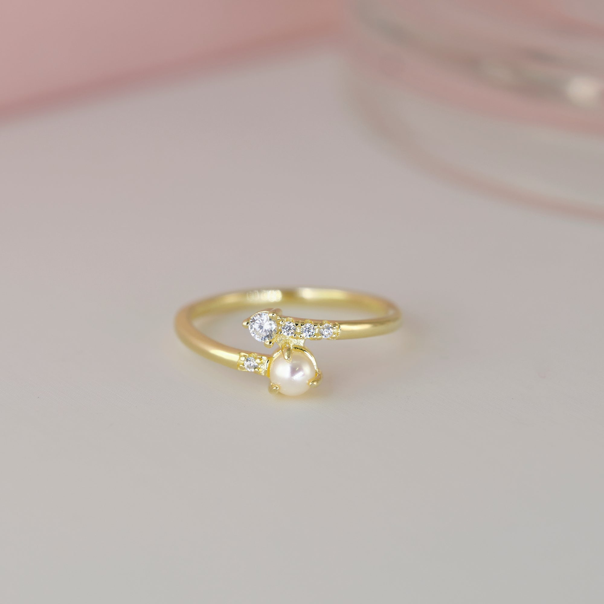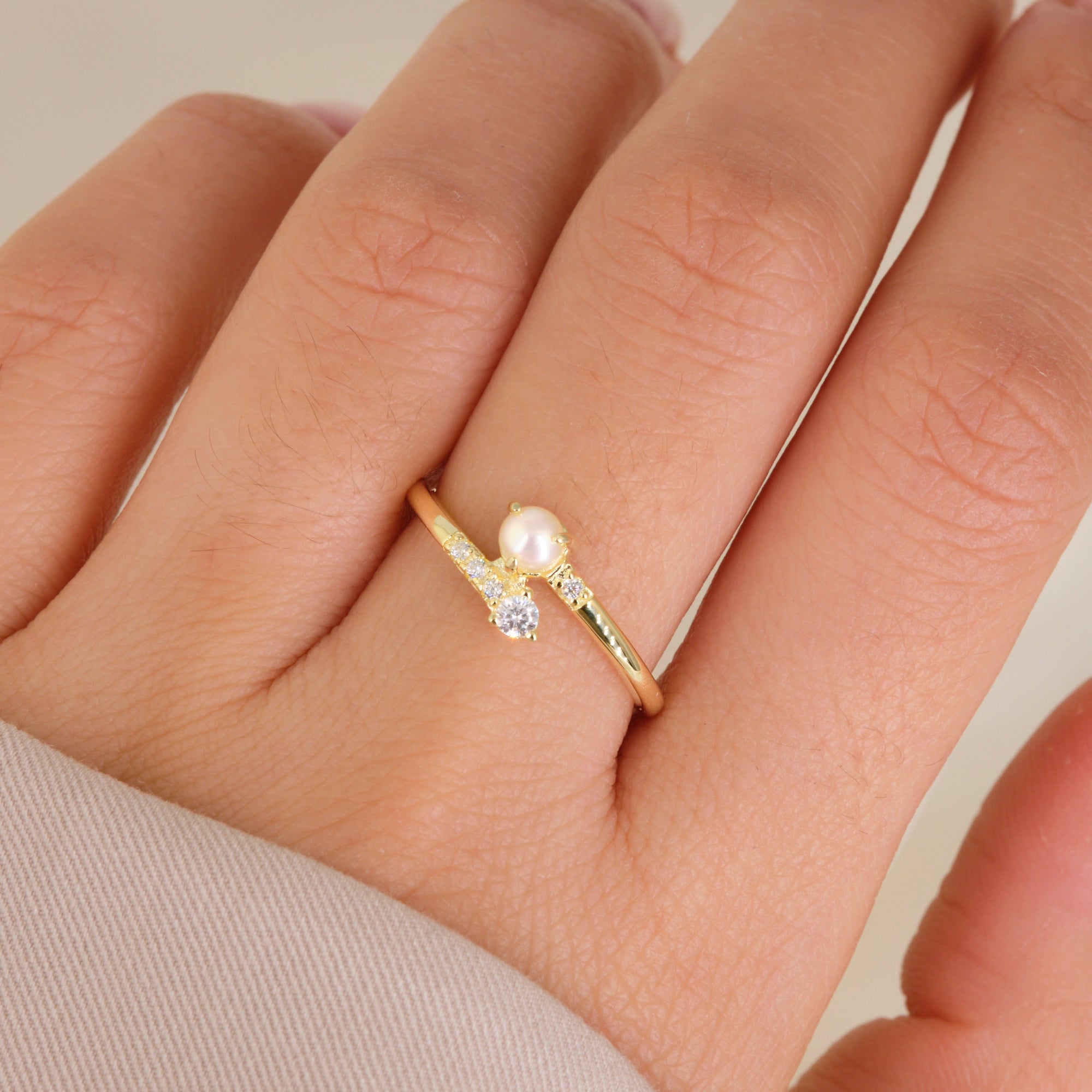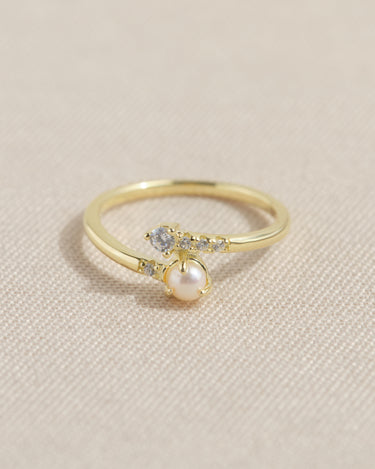 Un anello raffinato e femminile, decorato con perla e zirconi bianchi che donano luminosità e armonia. Perfetto per un tocco di classe quotidiano.