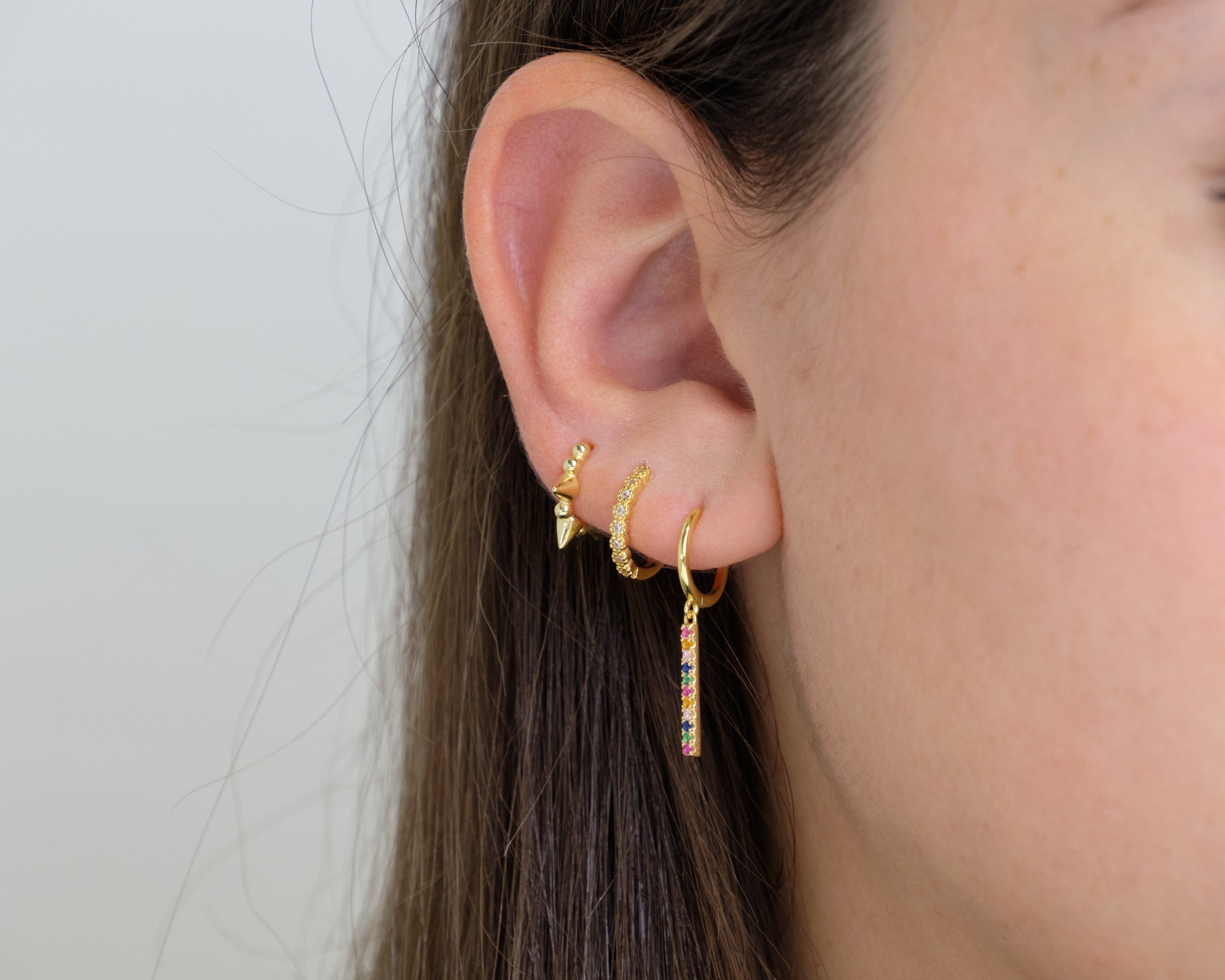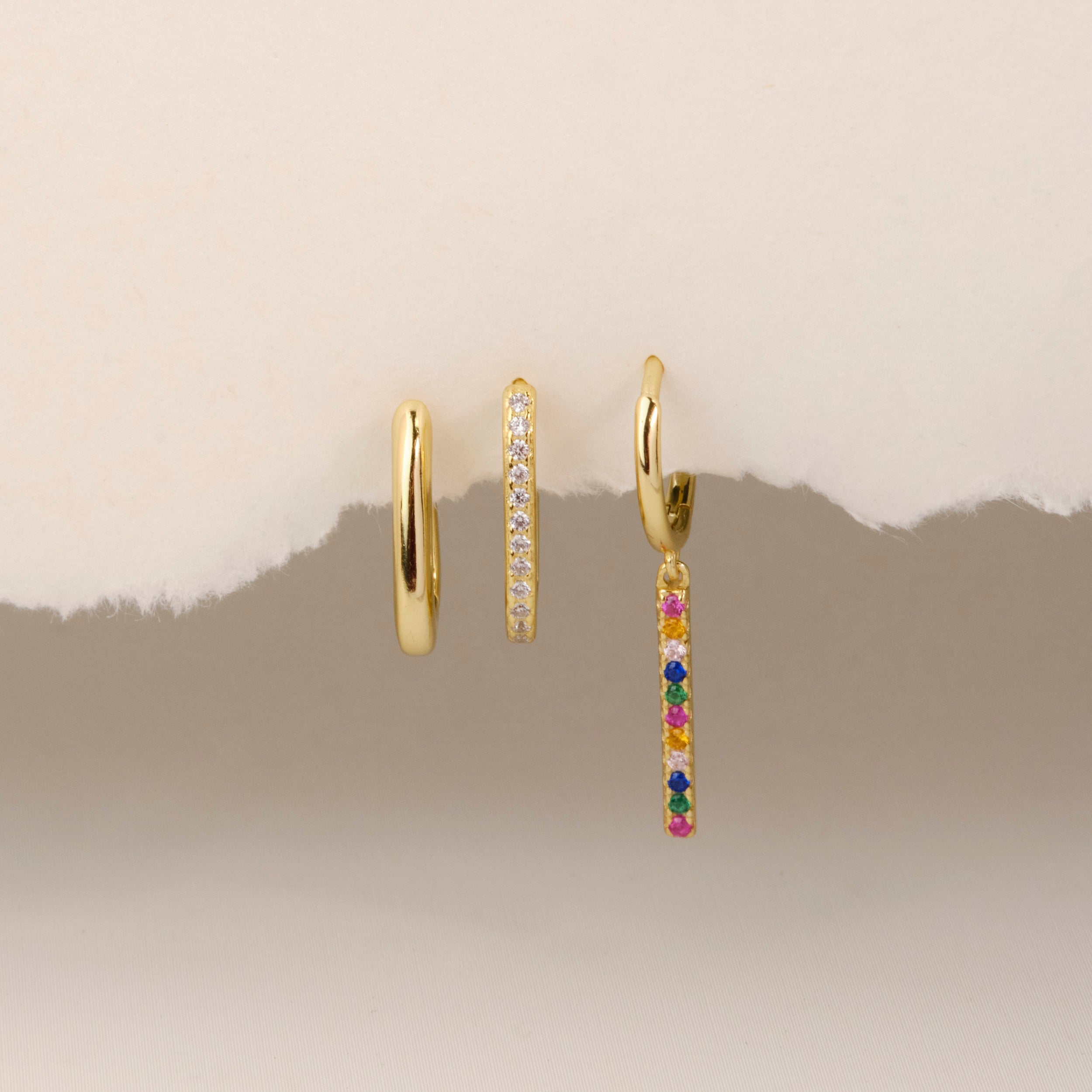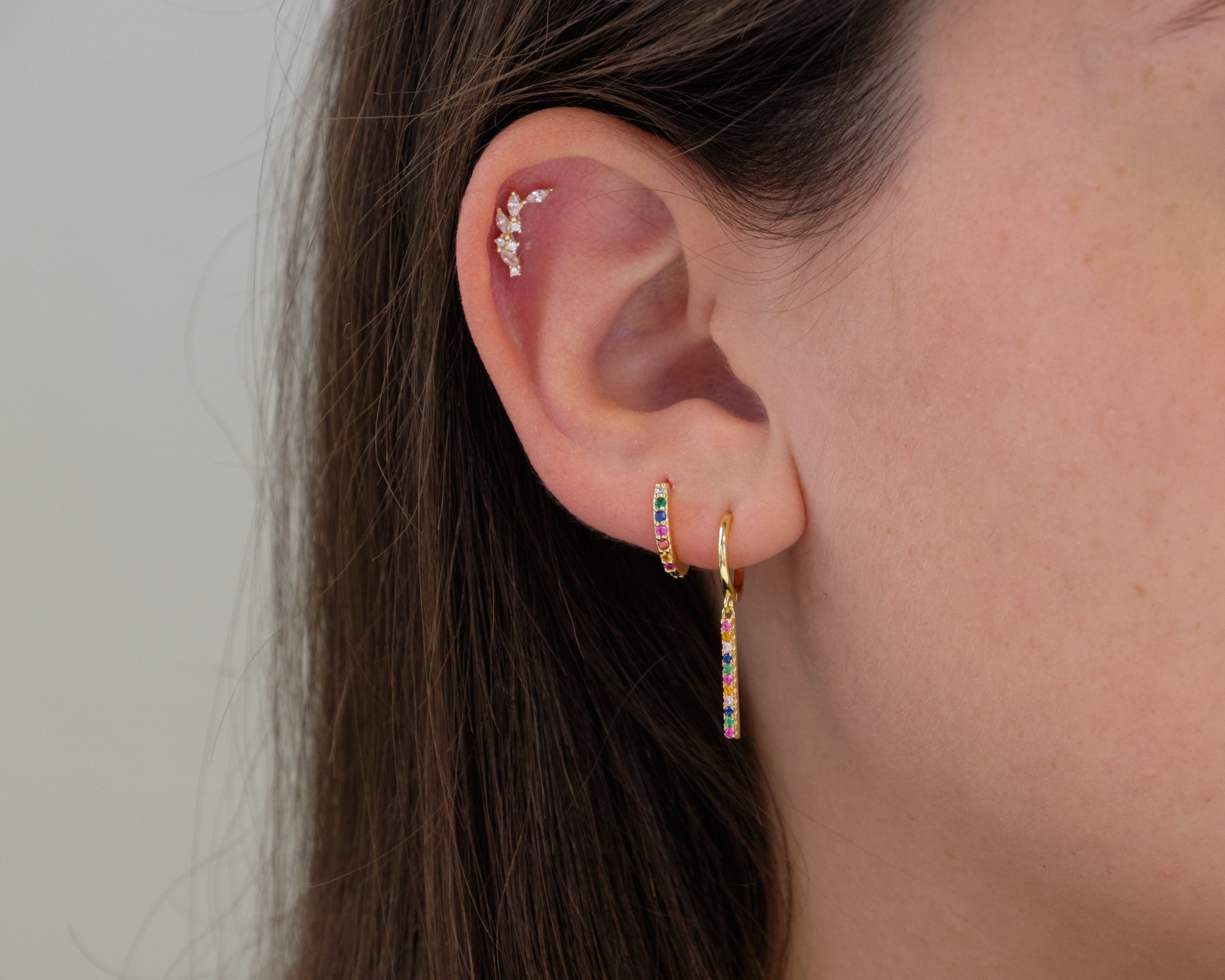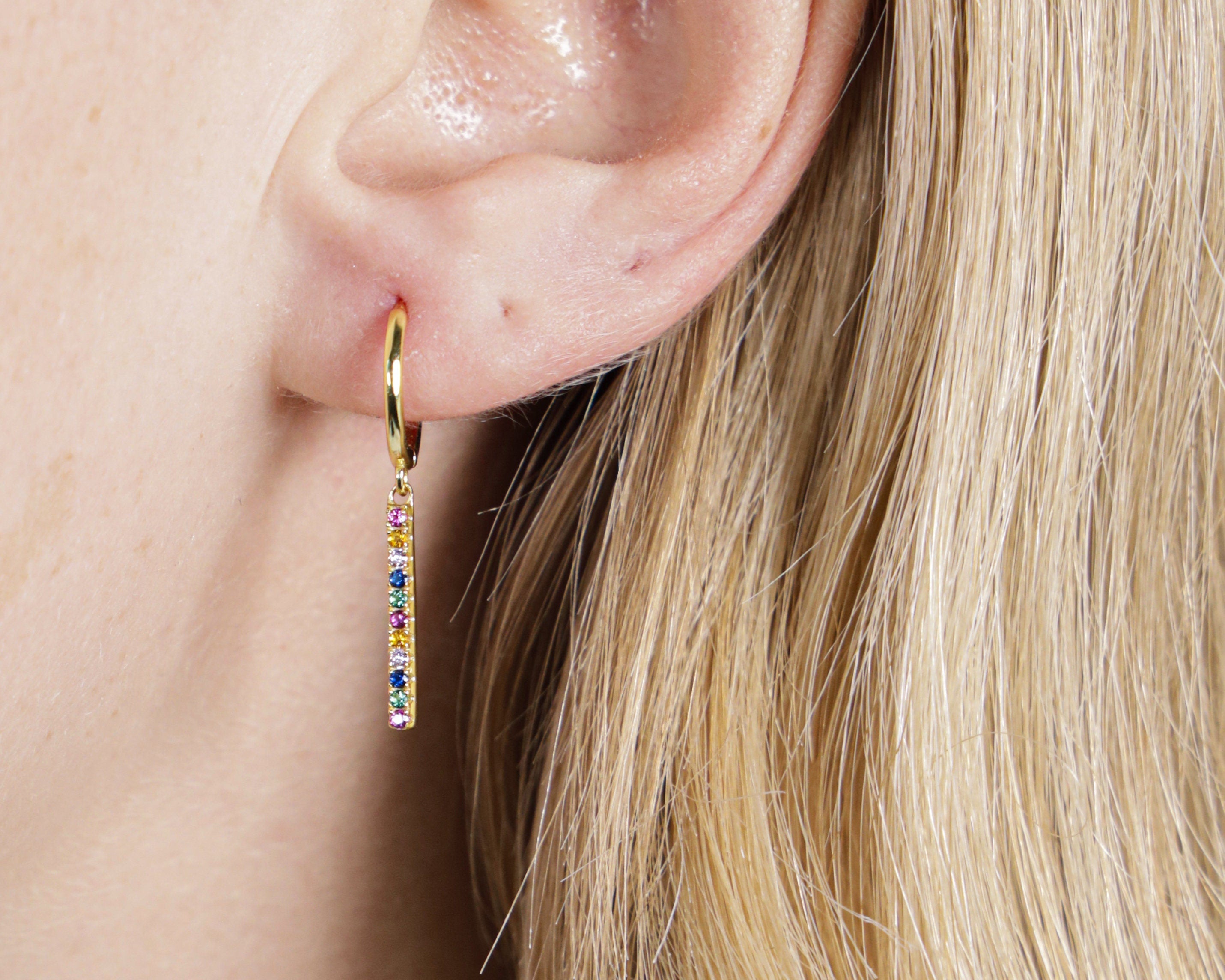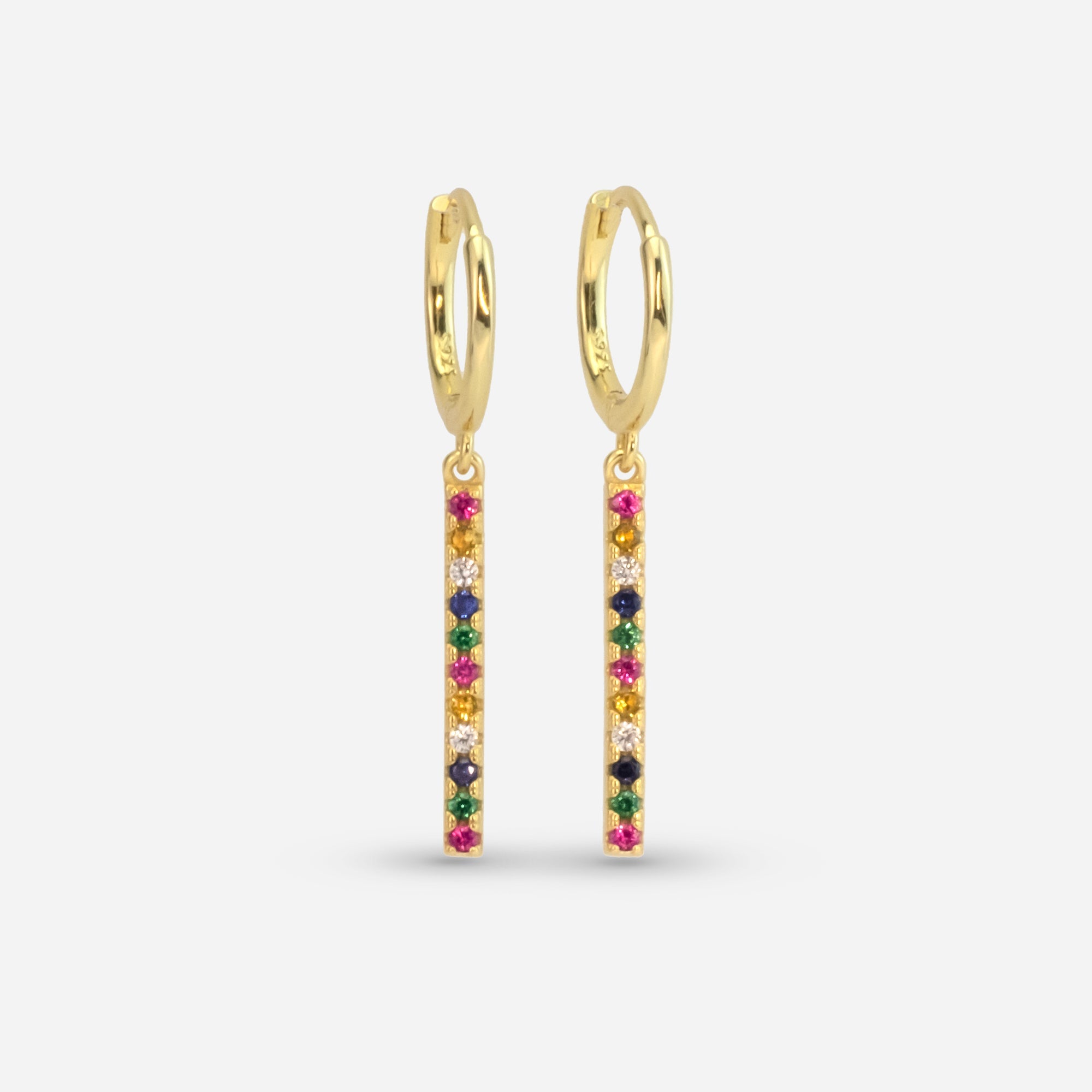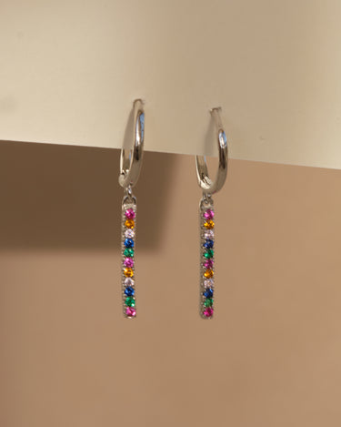 Orecchini pendenti in argento 925 con placcatura in oro 18K, impreziositi da zirconi multicolor taglio brillante. Un design vivace e raffinato, perfetto per aggiungere un tocco di colore e luminosità al tuo look, mantenendo un’eleganza senza tempo.