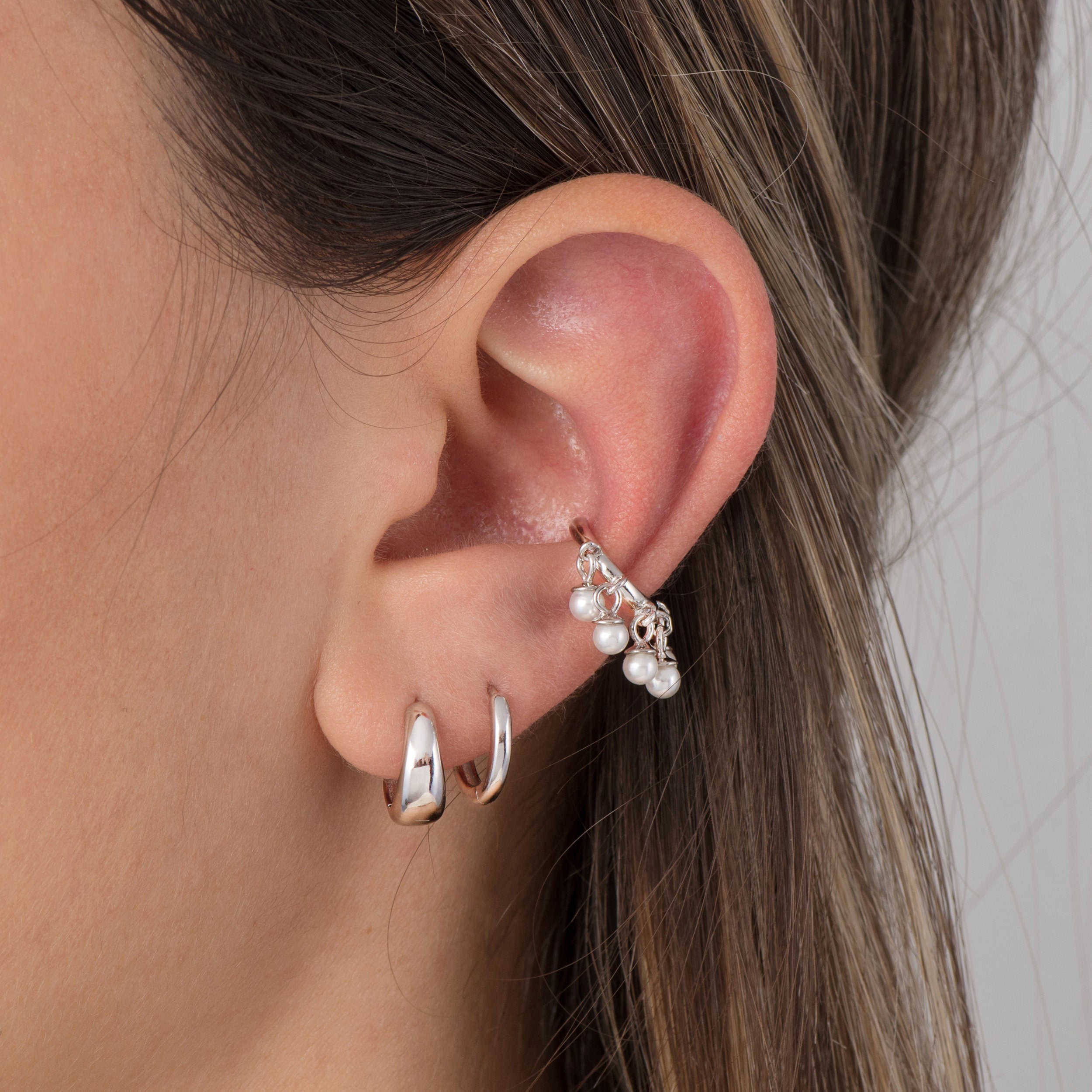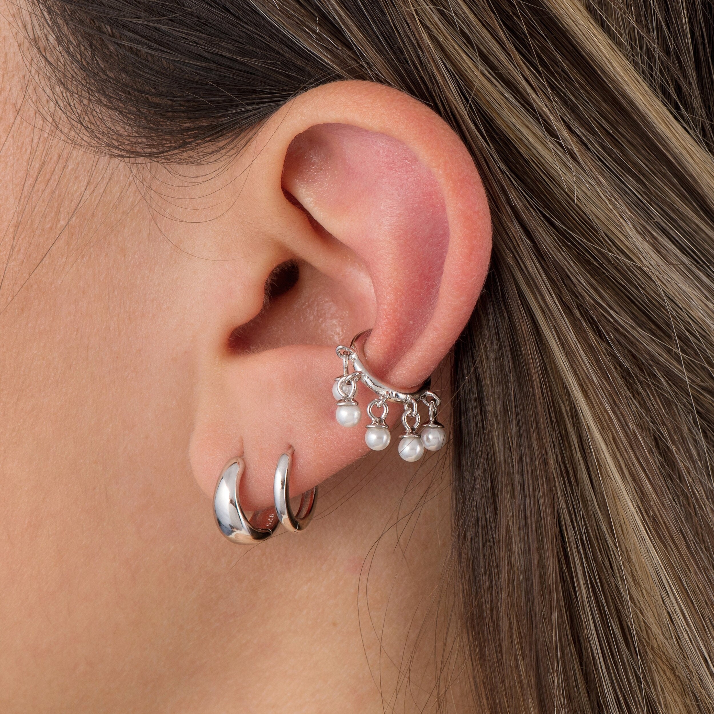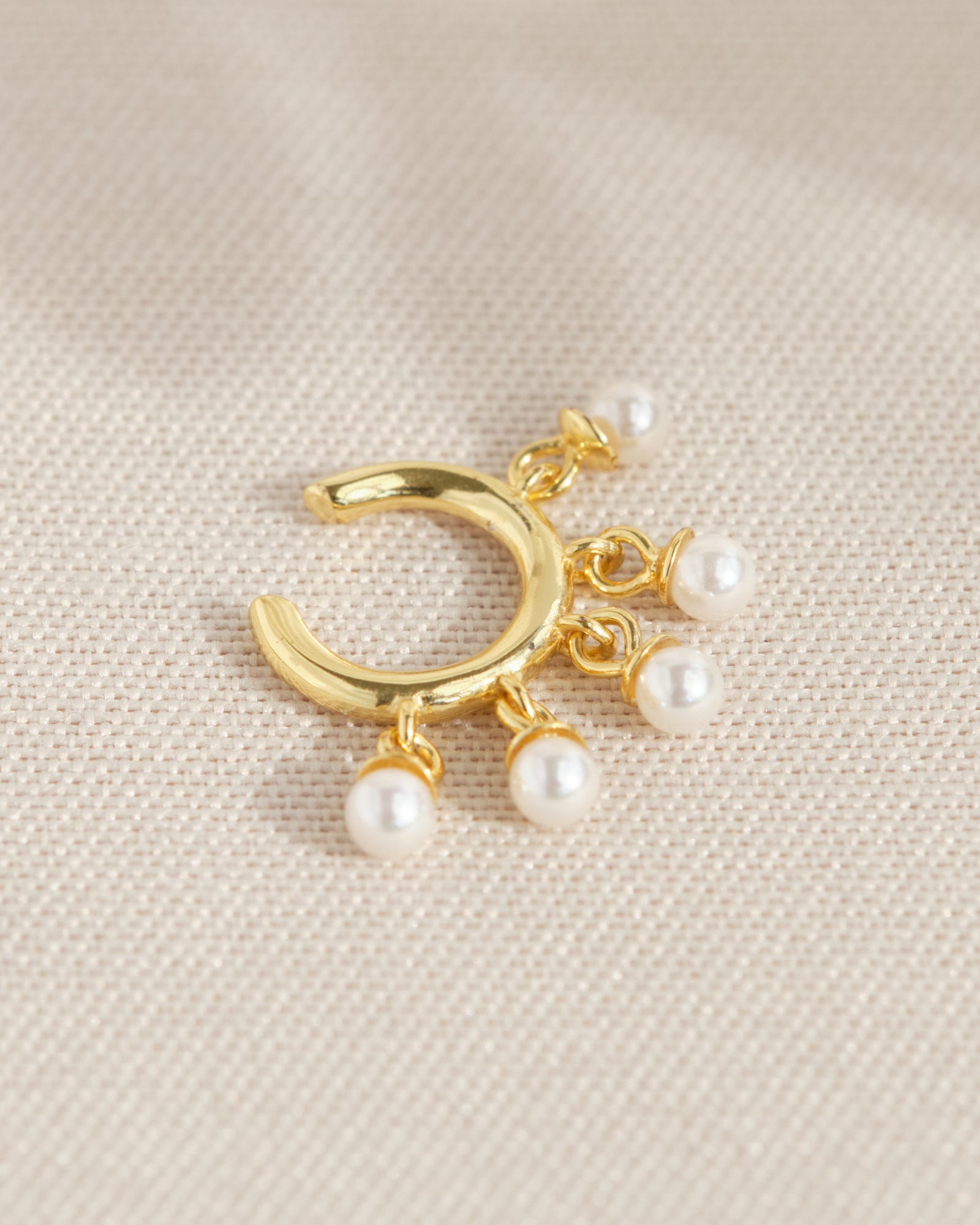 Un ear cuff raffinato e luminoso, decorato con piccole perle pendenti che donano movimento ed eleganza. Perfetto per chi ama i dettagli delicati senza rinunciare a un tocco di originalità.