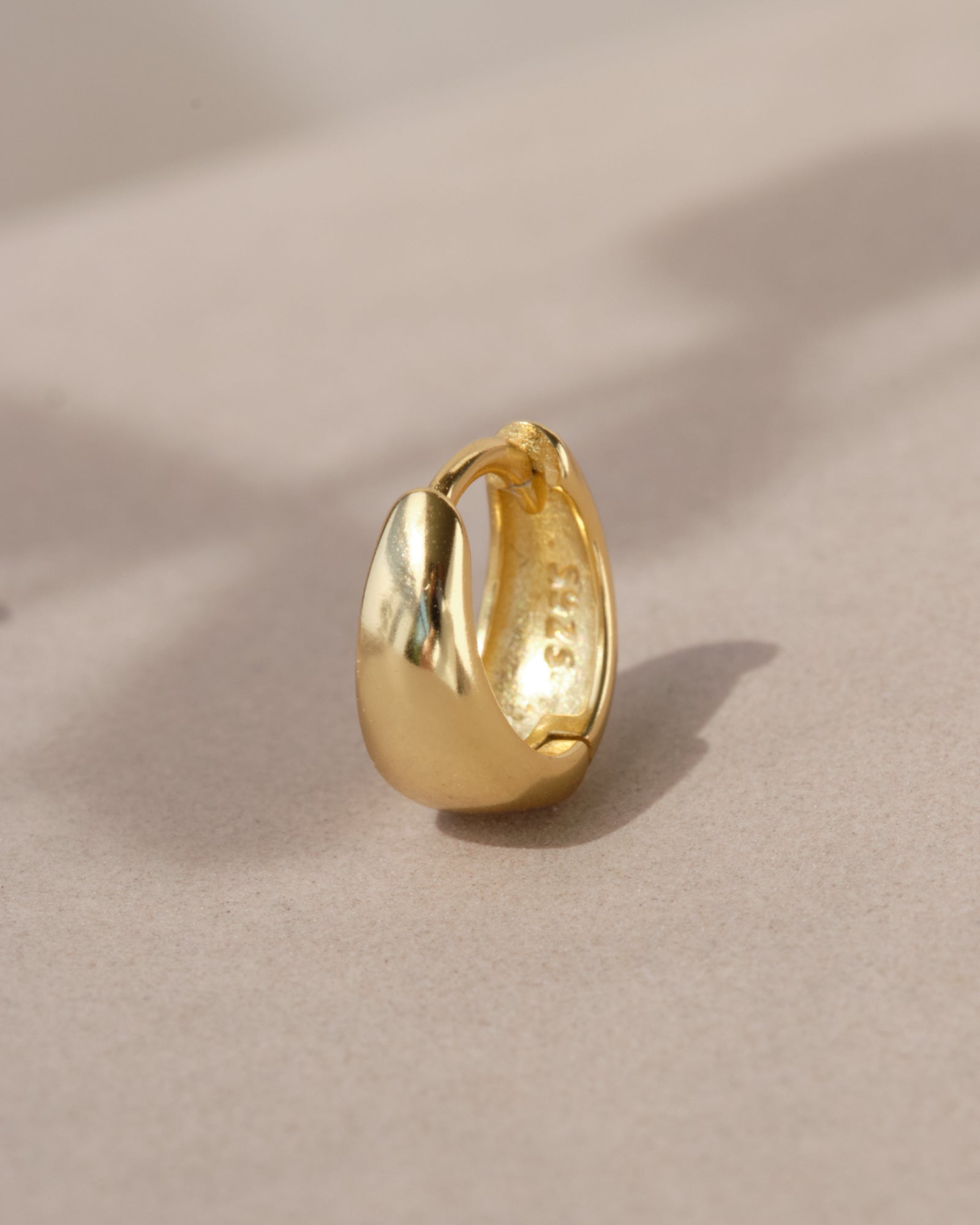 Un mini cerchietto bombato in argento 925 con placcatura in oro 18K o rodio, dal design essenziale e moderno. Un dettaglio luminoso che si abbina facilmente ad altri orecchini o si indossa da solo per un look minimal e raffinato.
