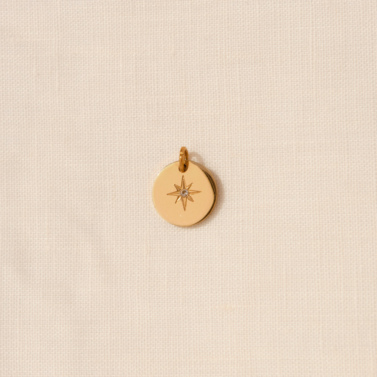 Una medaglietta dorata con una stella incisa e un punto luce centrale. Un simbolo di orientamento e speranza — per chi segue sempre la propria direzione, anche nei momenti più bui.